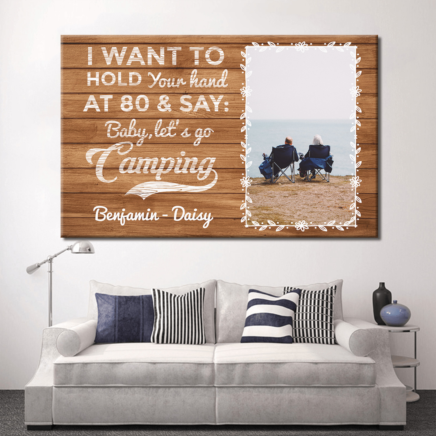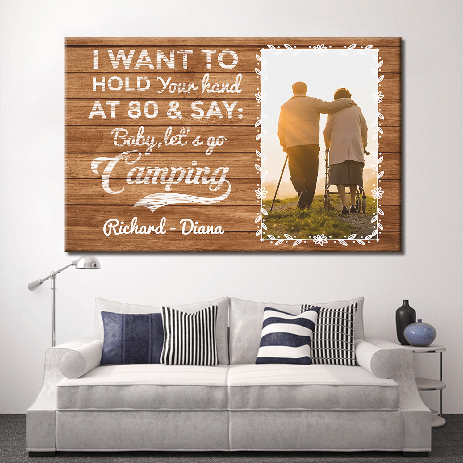 Let’s Shop Personalized Photo I Want to Hold Your Hand at 80 Baby Let’s Go Camping Framed Canvas – Unframed Poster!