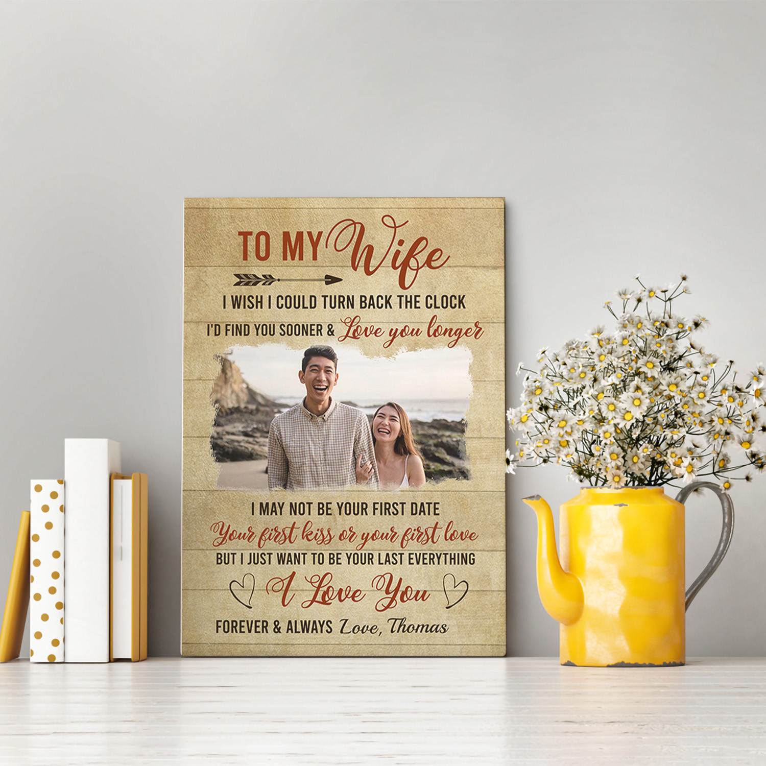 Are you spending too much time to find creative merchandise for you or suitable & special gifts for your mommy, your daddy, your son, your daughter, your children, your friends or someone you love? The struggle is over because we have various To My Wife I Wish I Could Turn Back the Clock Canvas, to My Husband Canvas, to My Husband when I Tell You I Love You, Personalized Canvas with Photo, Personalized Photo Poster, Personalized Wedding Gift, Personalized Wedding Sign, Personalized Wedding Gifts for The Couple, Personalized Anniversary Gifts, Personalized Anniversary Gifts for Him, Personalized 50th Anniversary Gifts,personalized Anniversary Gifts for Her,personalized Anniversary Gifts for Boyfriend, Personalized Couple Gifts, Personalized Couple Wall Art which will make perfect presents for your beloveds. In order to make your present stand out, we have created lots of unique and awesome customized photo gifts & personalized designs.