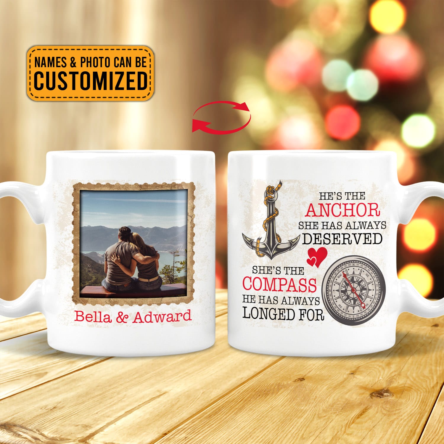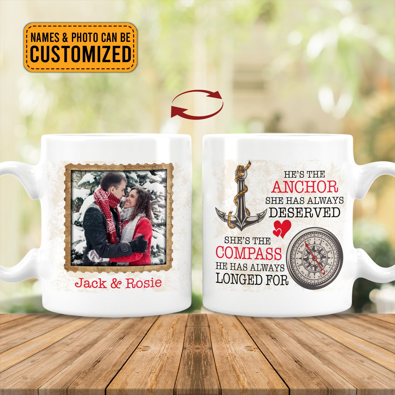 Let’s Shop Personalized He’s The Anchor She Has Always Deserved She’s The Compass He Has Always Longed For 2 Sides Coffee Mug!