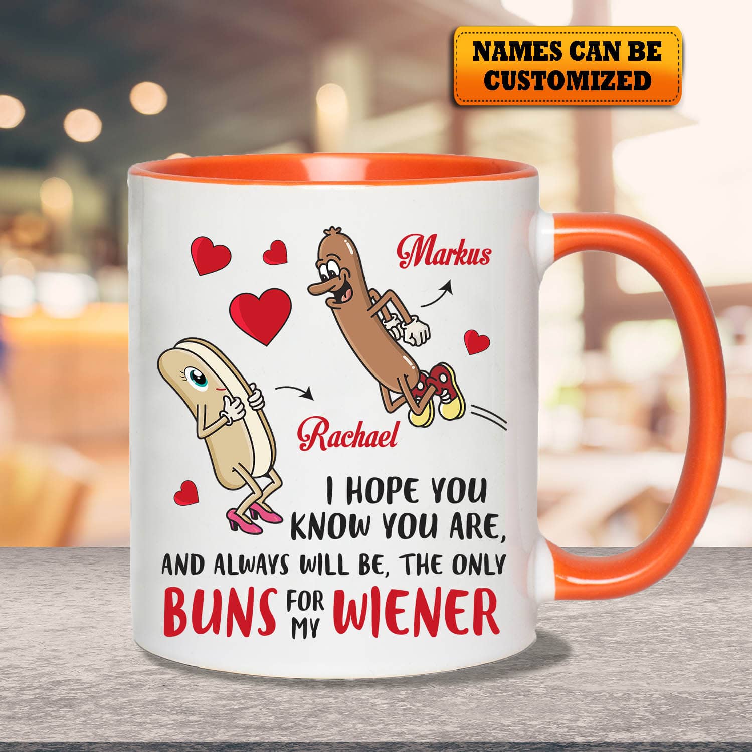 Let’s Shop Personalized I Hope You Know You Are and Always Will Be the Only Buns For My Wiener Funny Valentines Gifts Accent Mug!