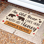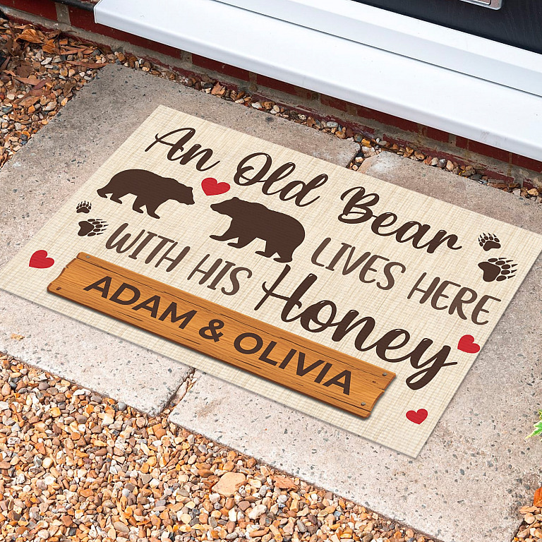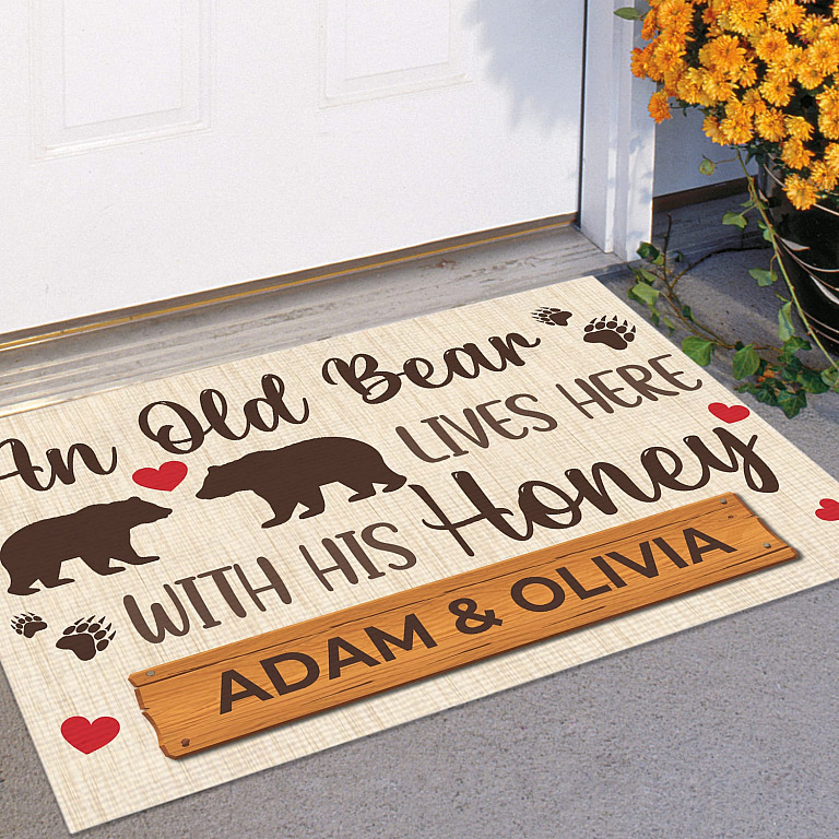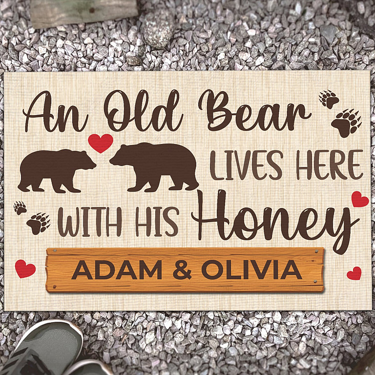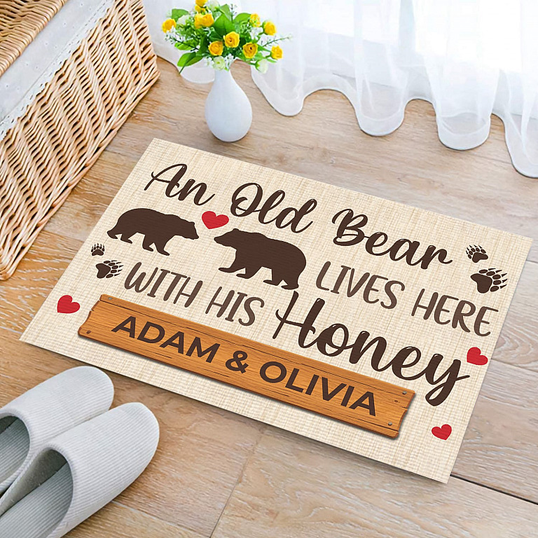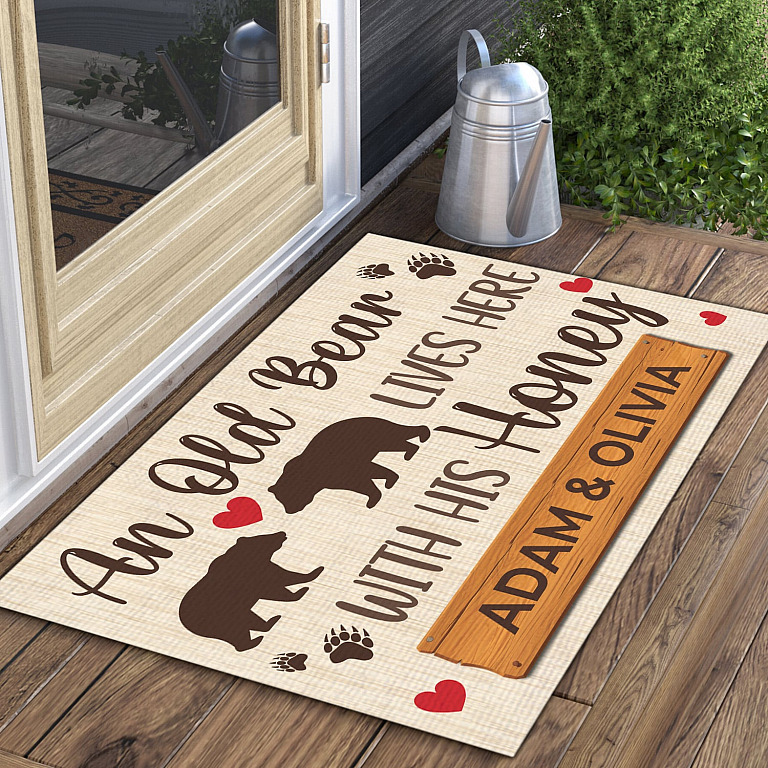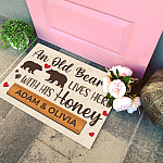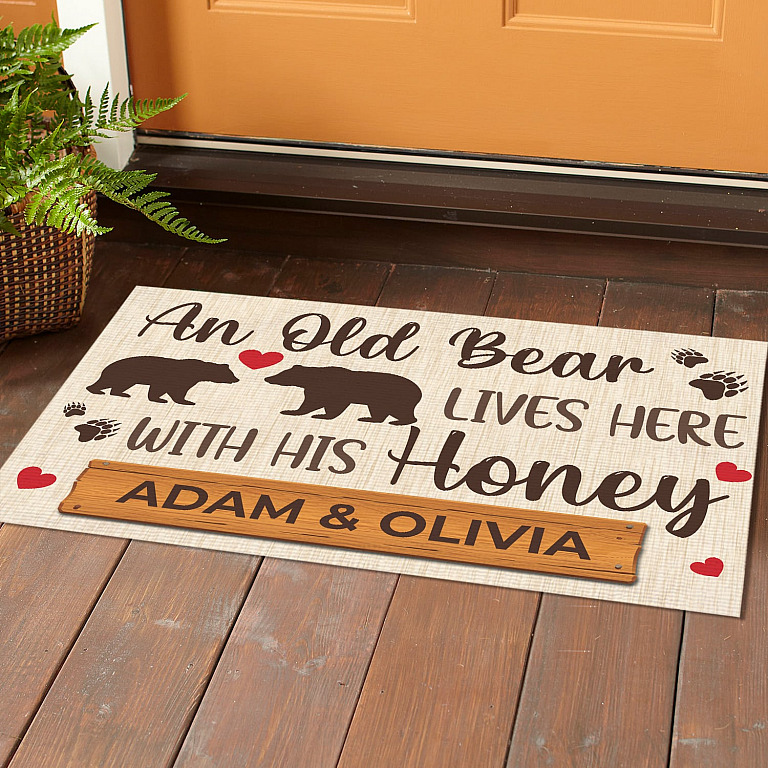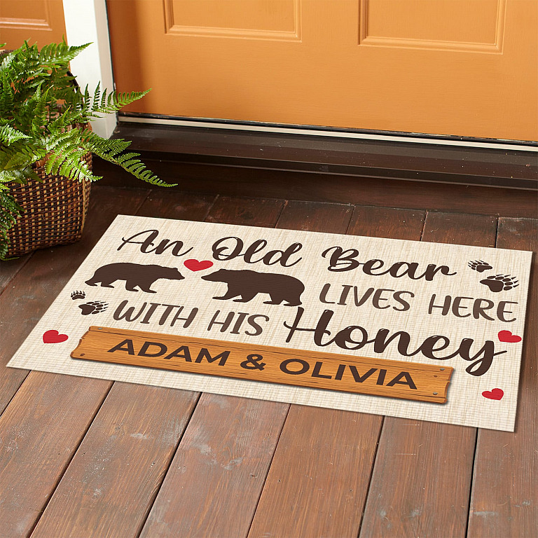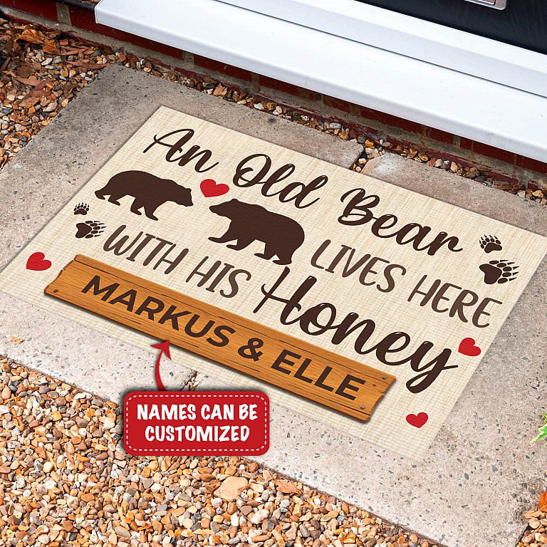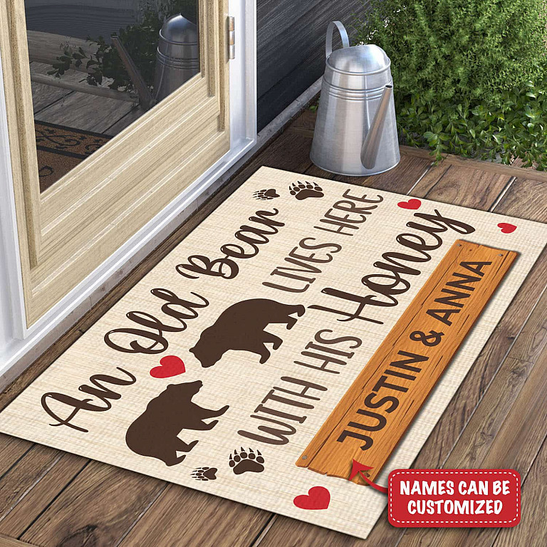Let’s Shop Personalized Couple Name An Old Bear Lives Here With His Honey Outdoor Indoor Doormat – Funny Welcome Couple Bear Doormat!