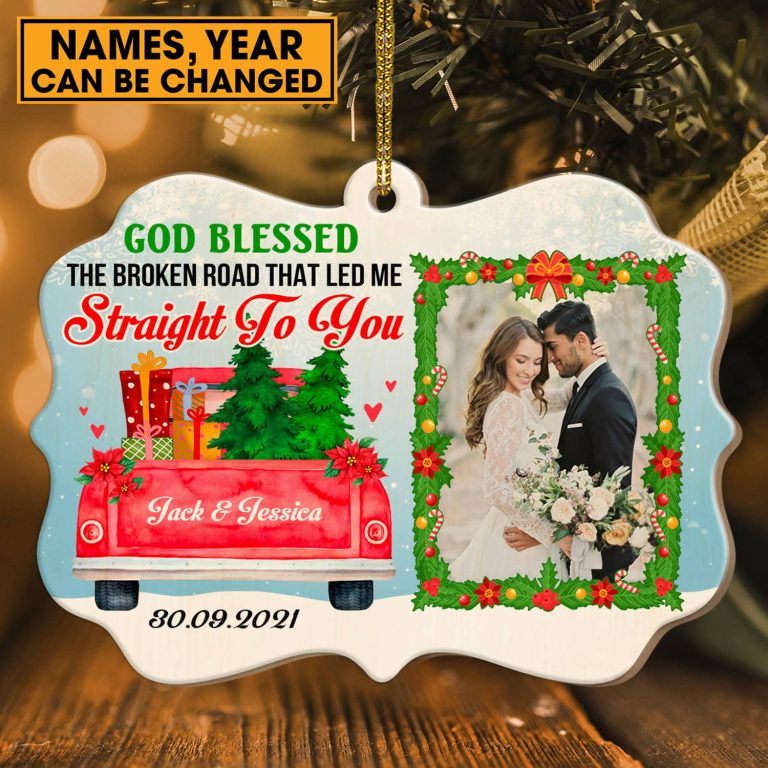 Let’s Shop Personalized Photo God Blessed The Broken Road Led Me Straight To You Christmas Custom Shaped Wooden Ornament!