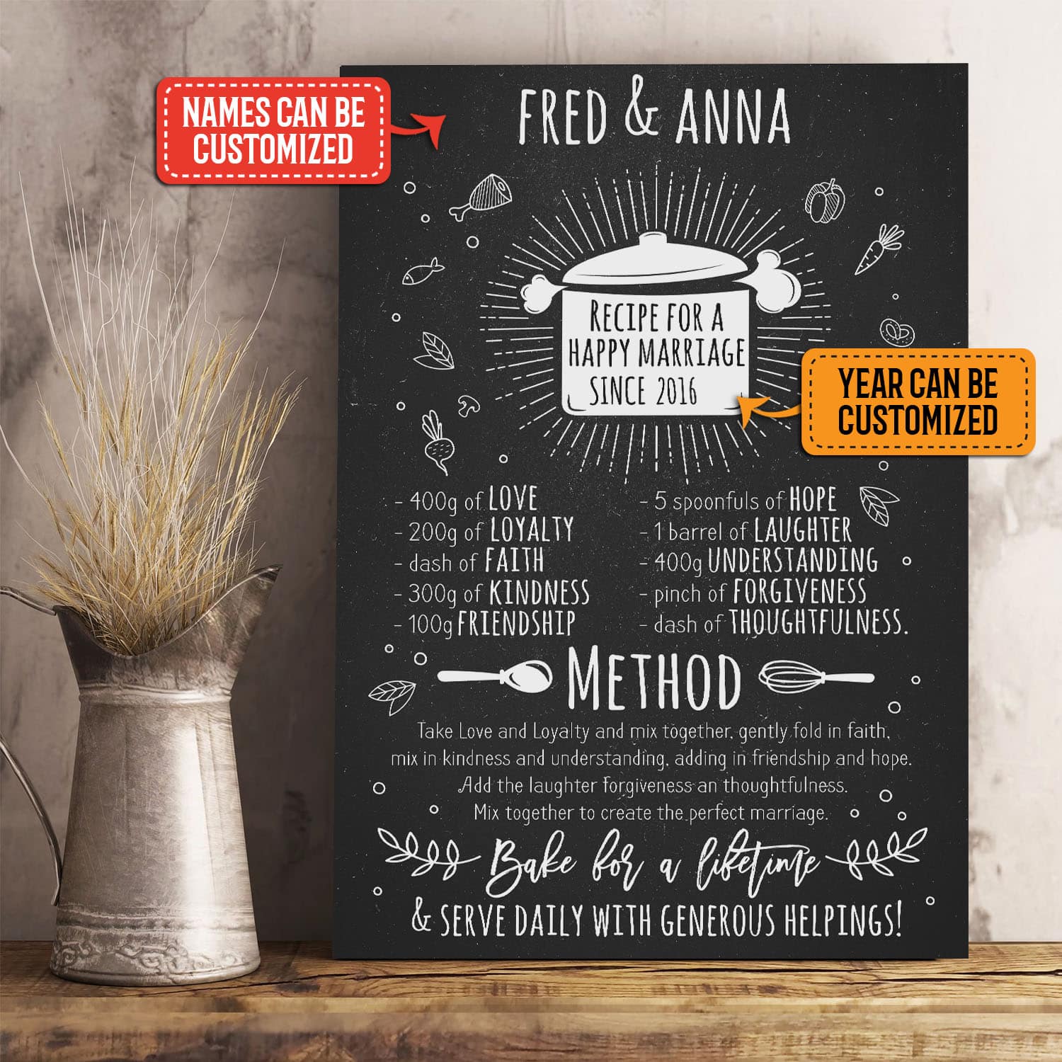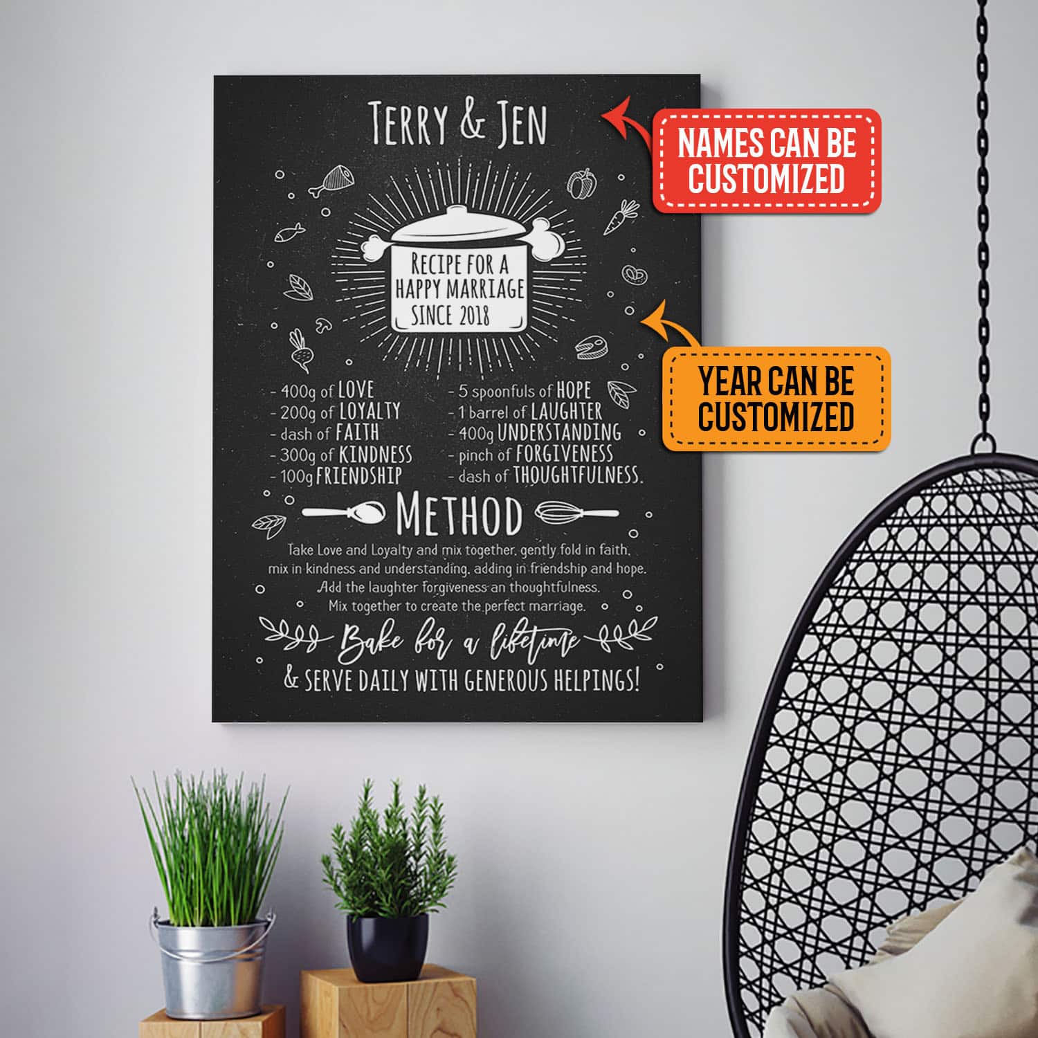 Let’s Shop Personalized Couple’s Name Recipe for a Happy Marriage Gallery Wrapped Framed Canvas Prints – Unframed Poster!