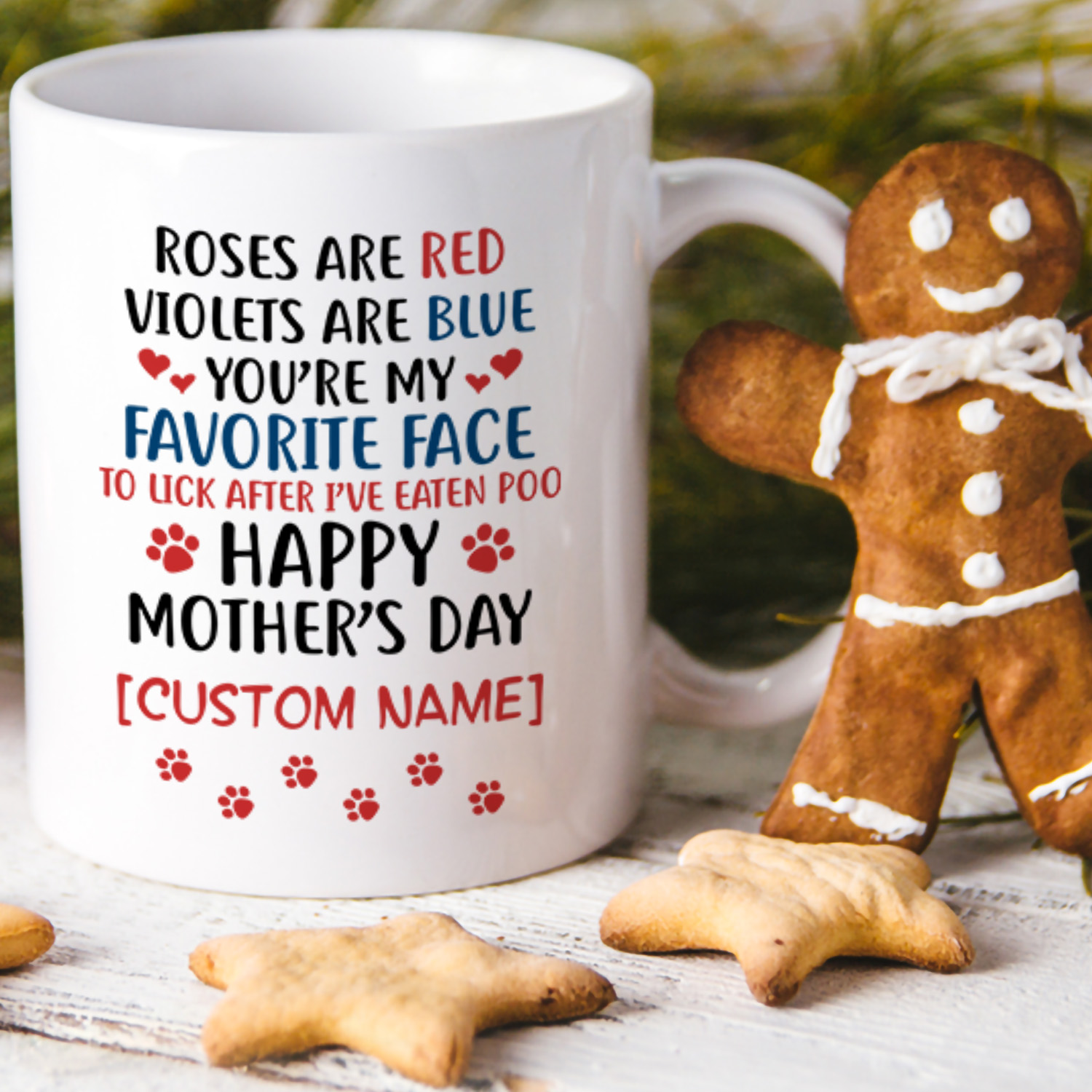 Let’s Shop Personalized Dog Mom Roses Are Red Violets Are Blue You’re the Face to Lick After I Eat Poo Coffee Mug!