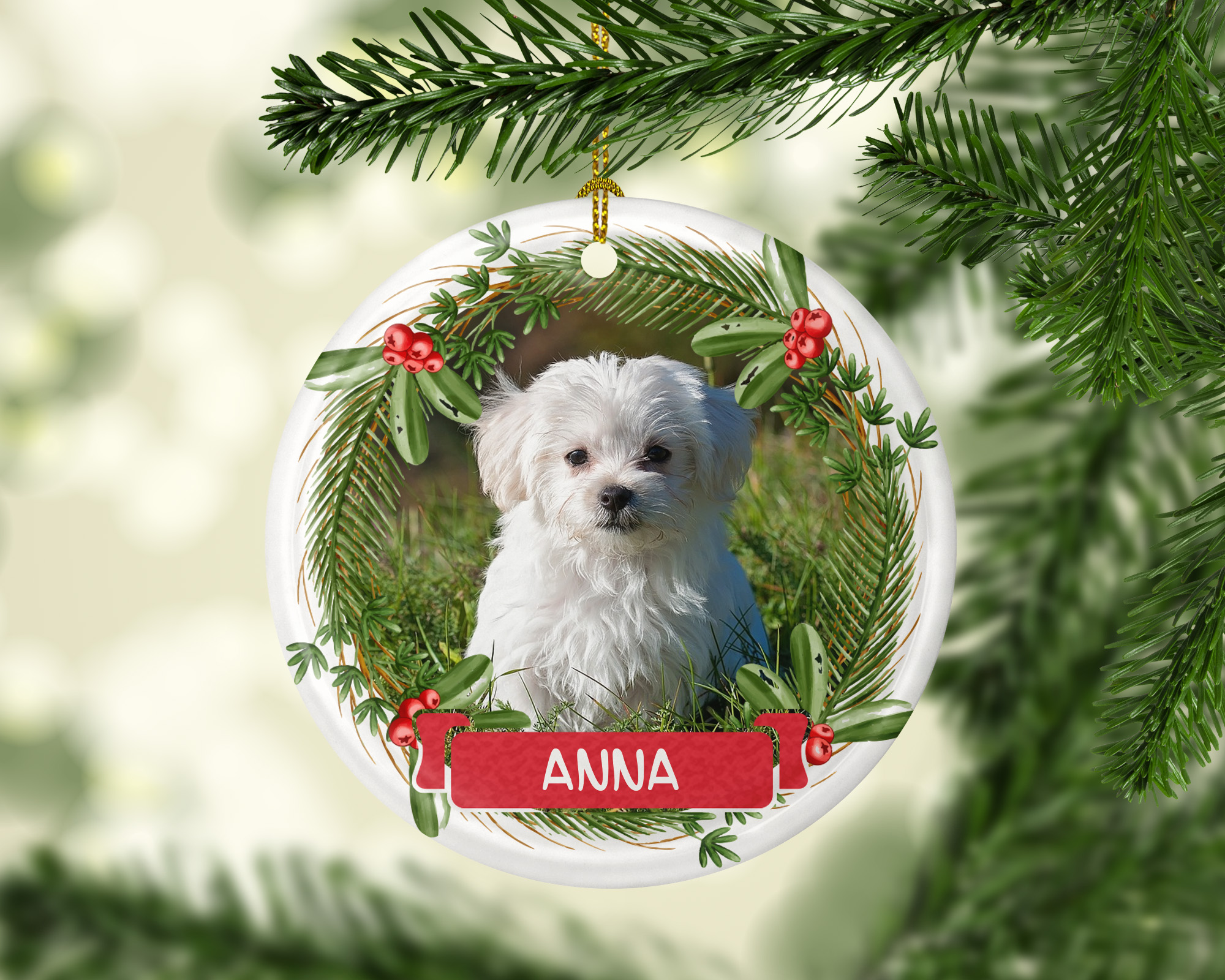 Let’s Shop Personalized Custom Photo Dog Cat Pet Christmas Circle Ornament With Name For Your Fur Baby!