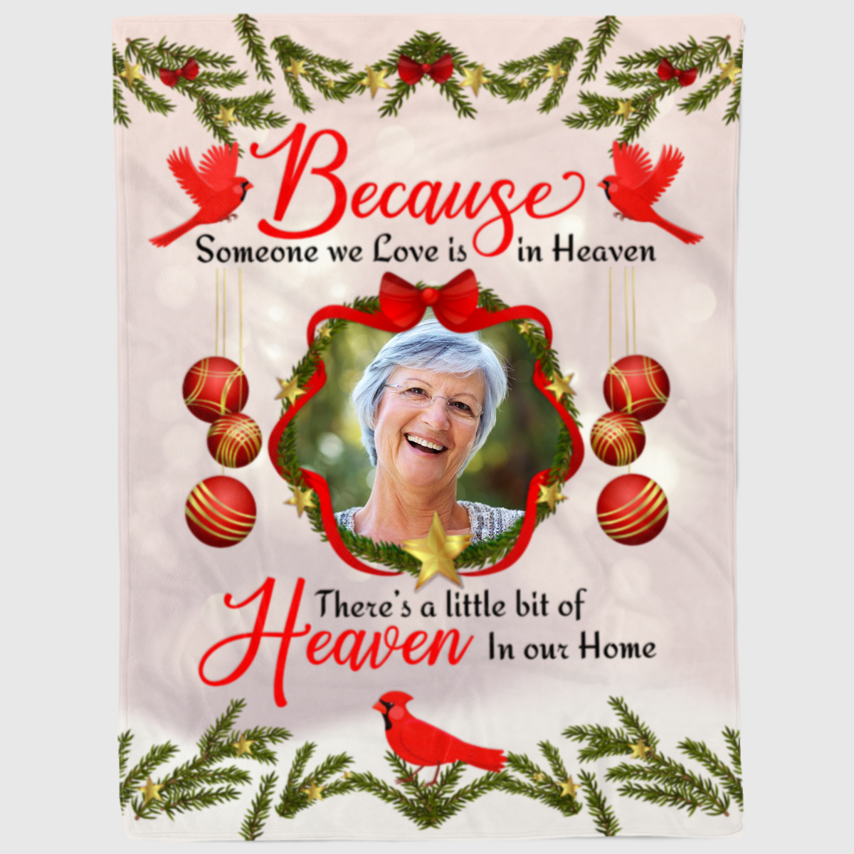 Let’s Shop Personalized Custom Photo Red Cardinal Memorial Because Someone We Love In Heaven Fleece – Mink Sherpa Blanket!