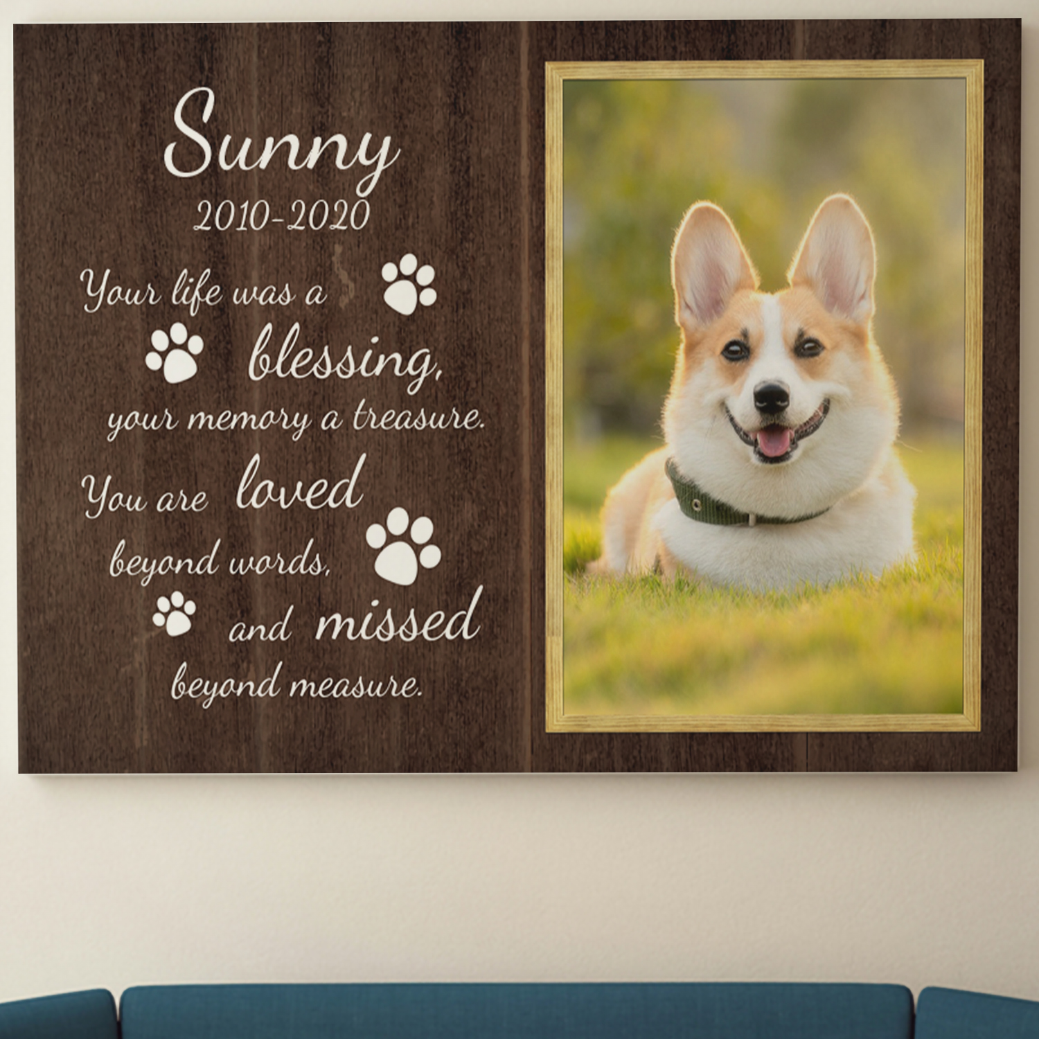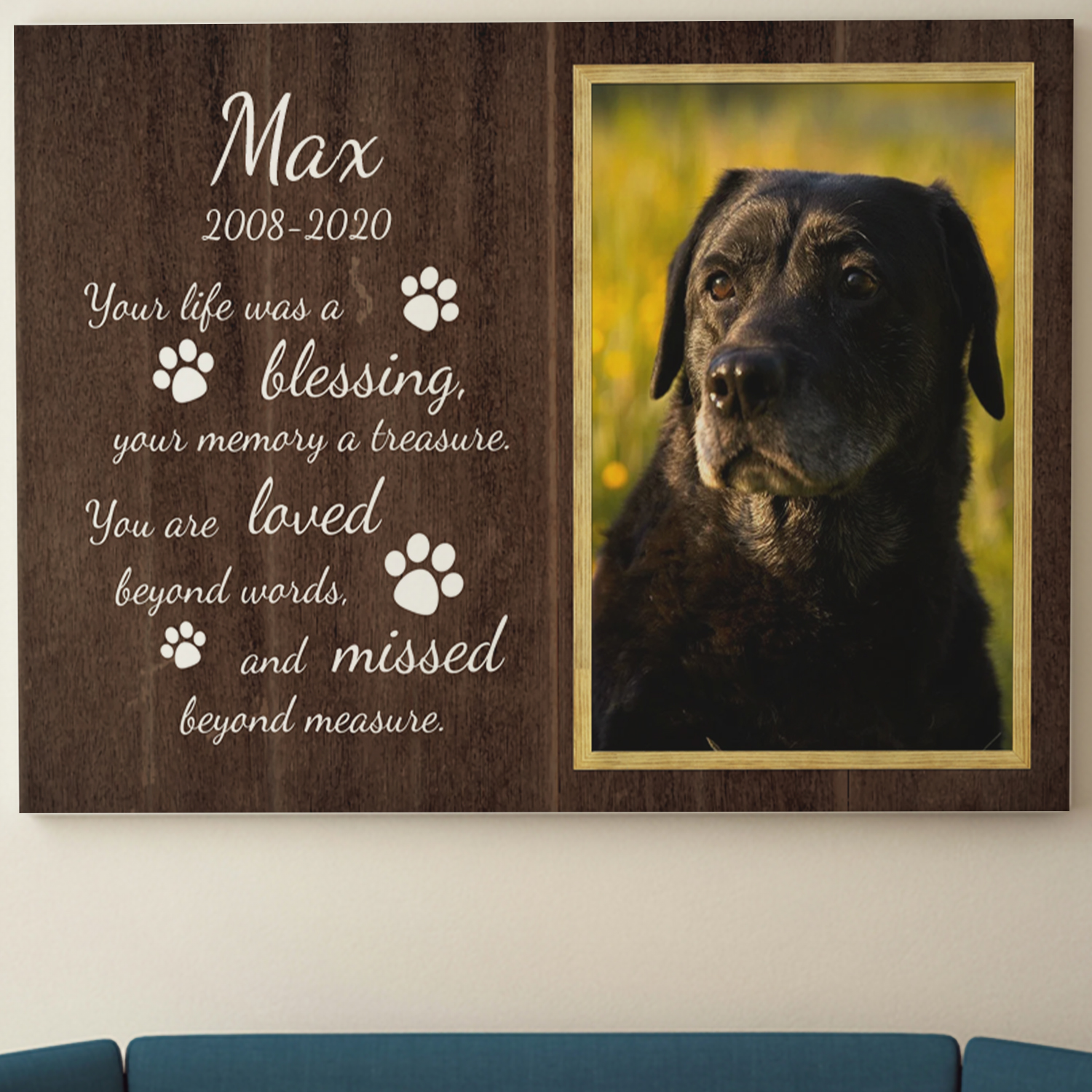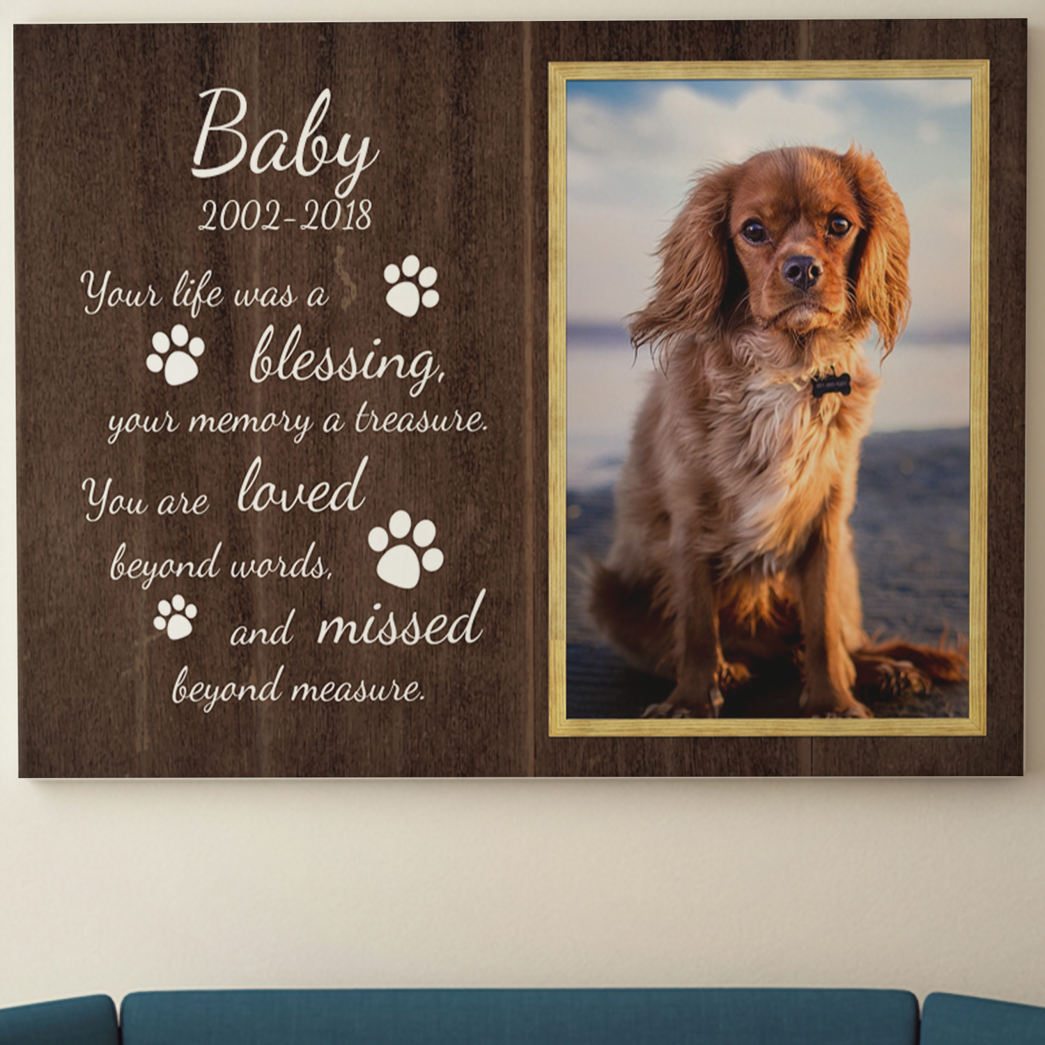 Let’s Shop Personalized Custom Photo Your Life Was A Blessing Pet Memorial Framed Canvas – Sympathy Dog Unframed Poster!