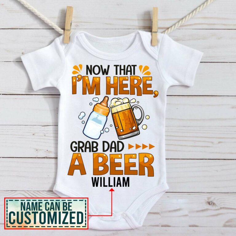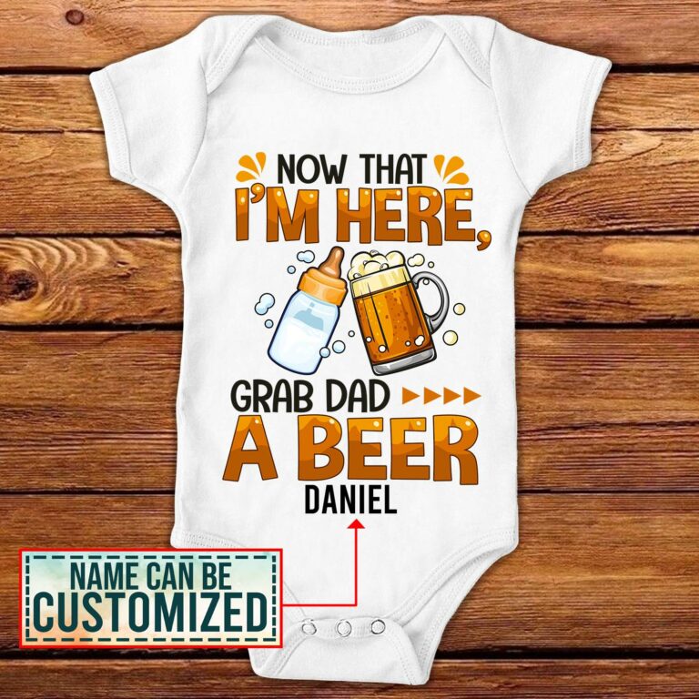 Let’s Shop Personalized Now That I’m Here Grab Dad a Beer Baby Onesie – Toddler Baby Infant Bodysuit!