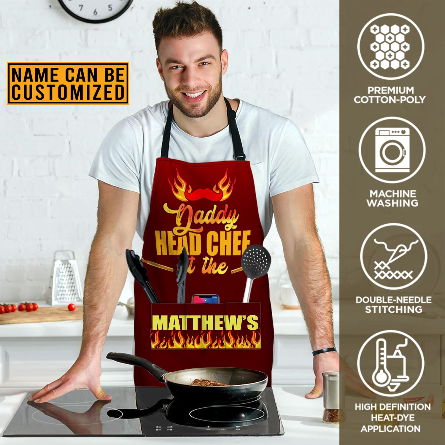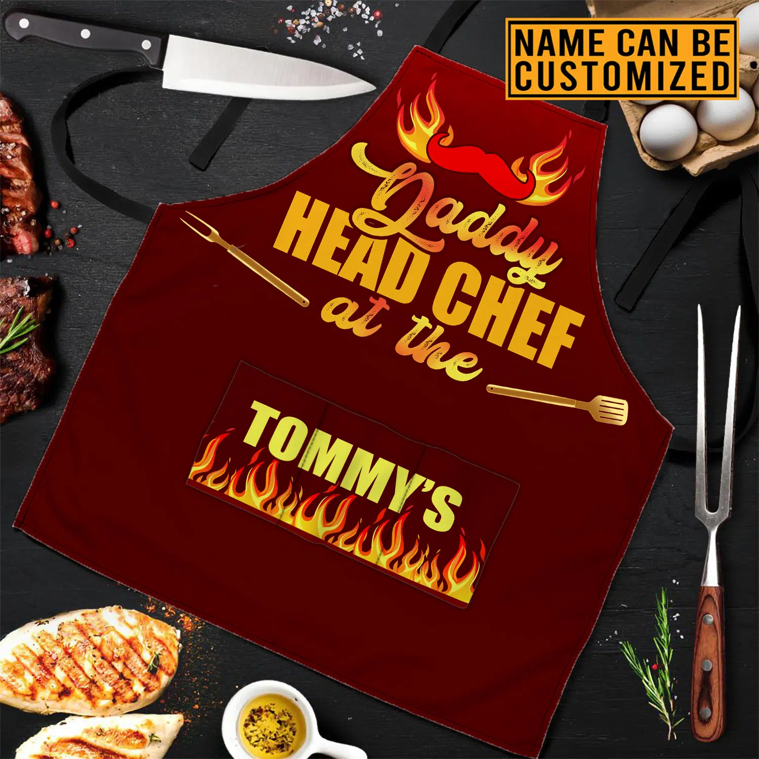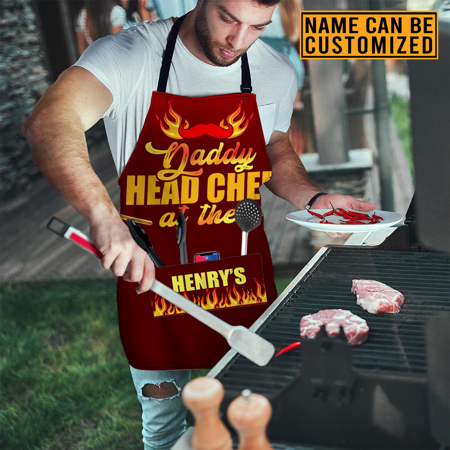 Let’s Shop Personalized Name Daddy Head Chef Three Pocket Apron – BBQ Kitchen Cooking Chef Birthday Christmas Fathers Day – Grilling Vintage Aprons for Men!