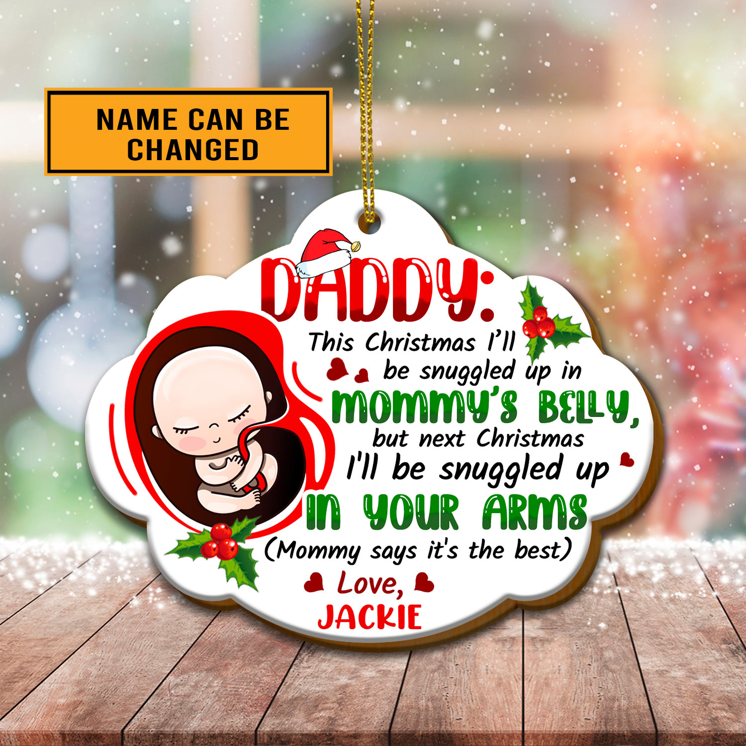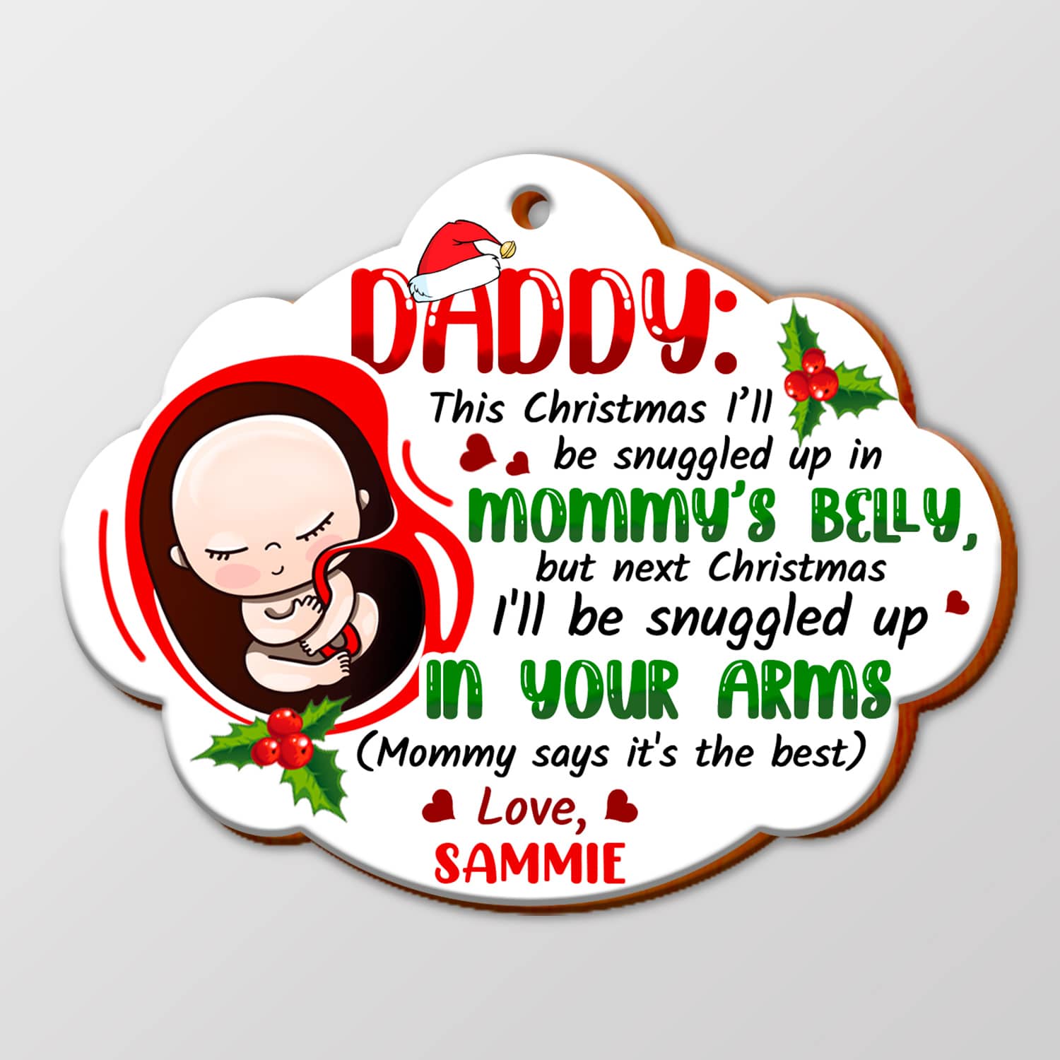 Let’s Shop Personalized Daddy This Christmas I’ll Snuggled Up In Mommy’s Belly Daddy To Be Custom Shaped Christmas Ornament!