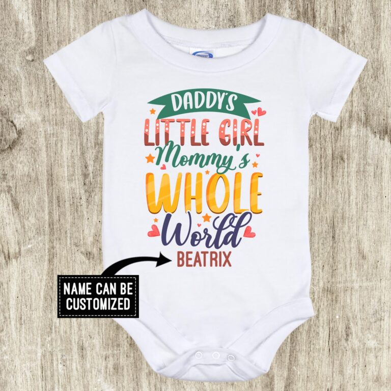 Let’s Shop Personalized Daddy’s Little Girl Mommy’s Whole World Baby Onesie – Toddler Baby Infant Bodysuit!
