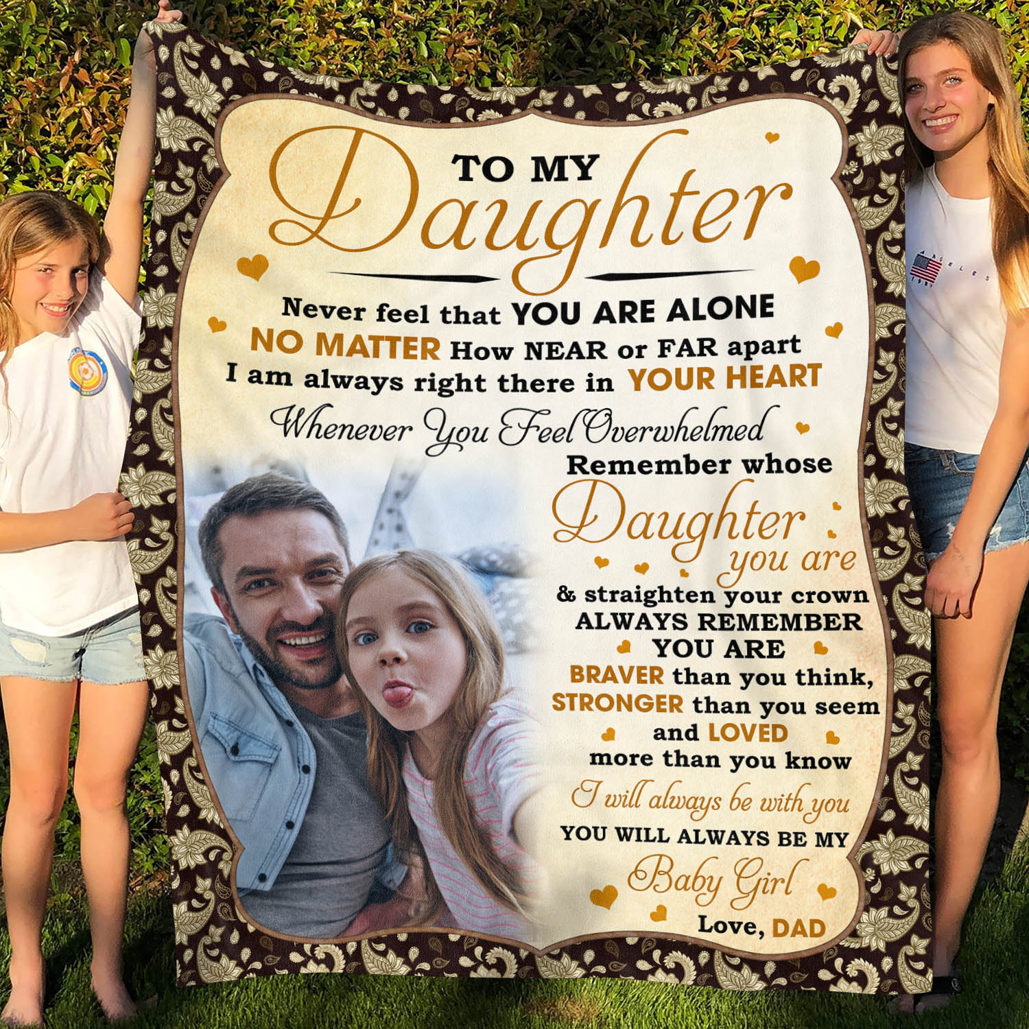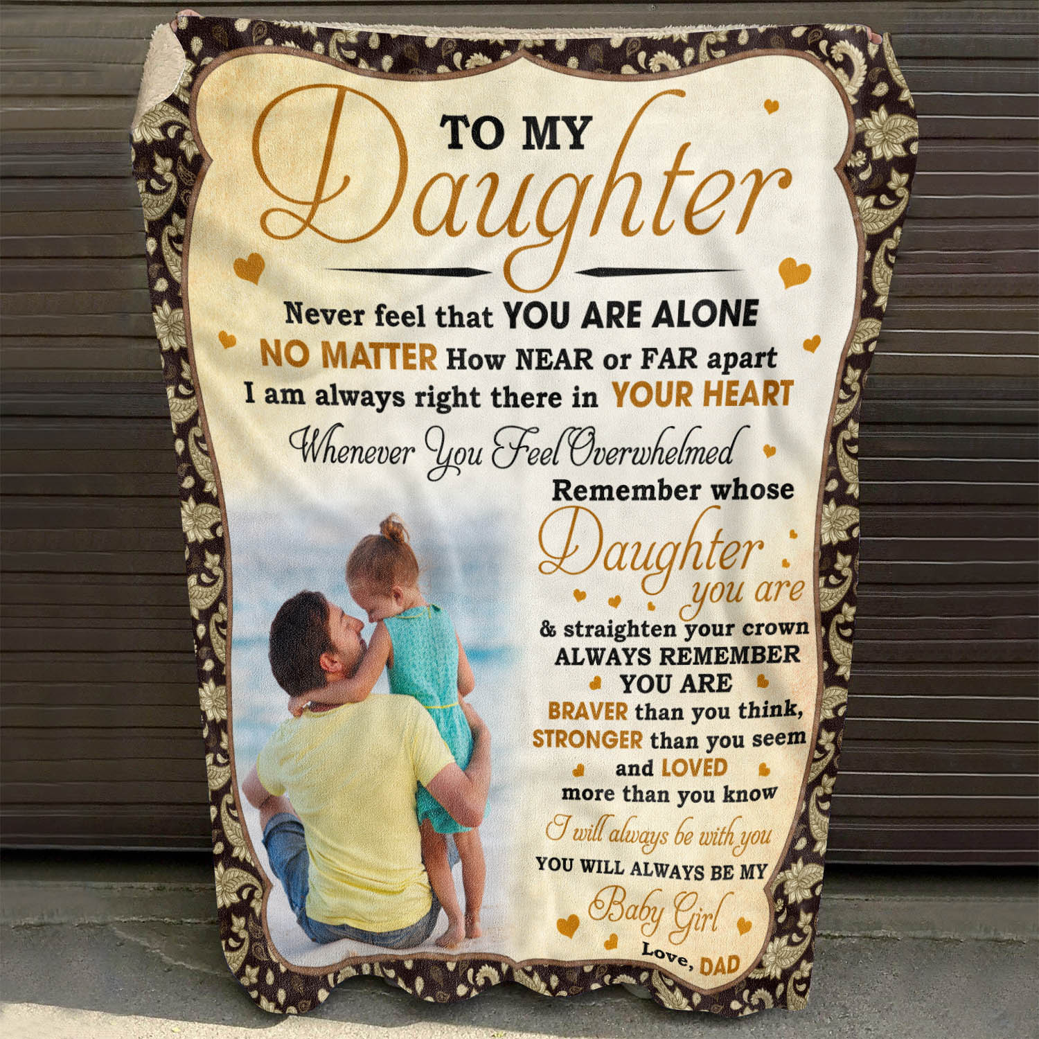 Let’s Shop Personalized Photo From Dad To My Daughter Never Feel That You Are Alone Fleece Blanket – Mink Sherpa Blanket!