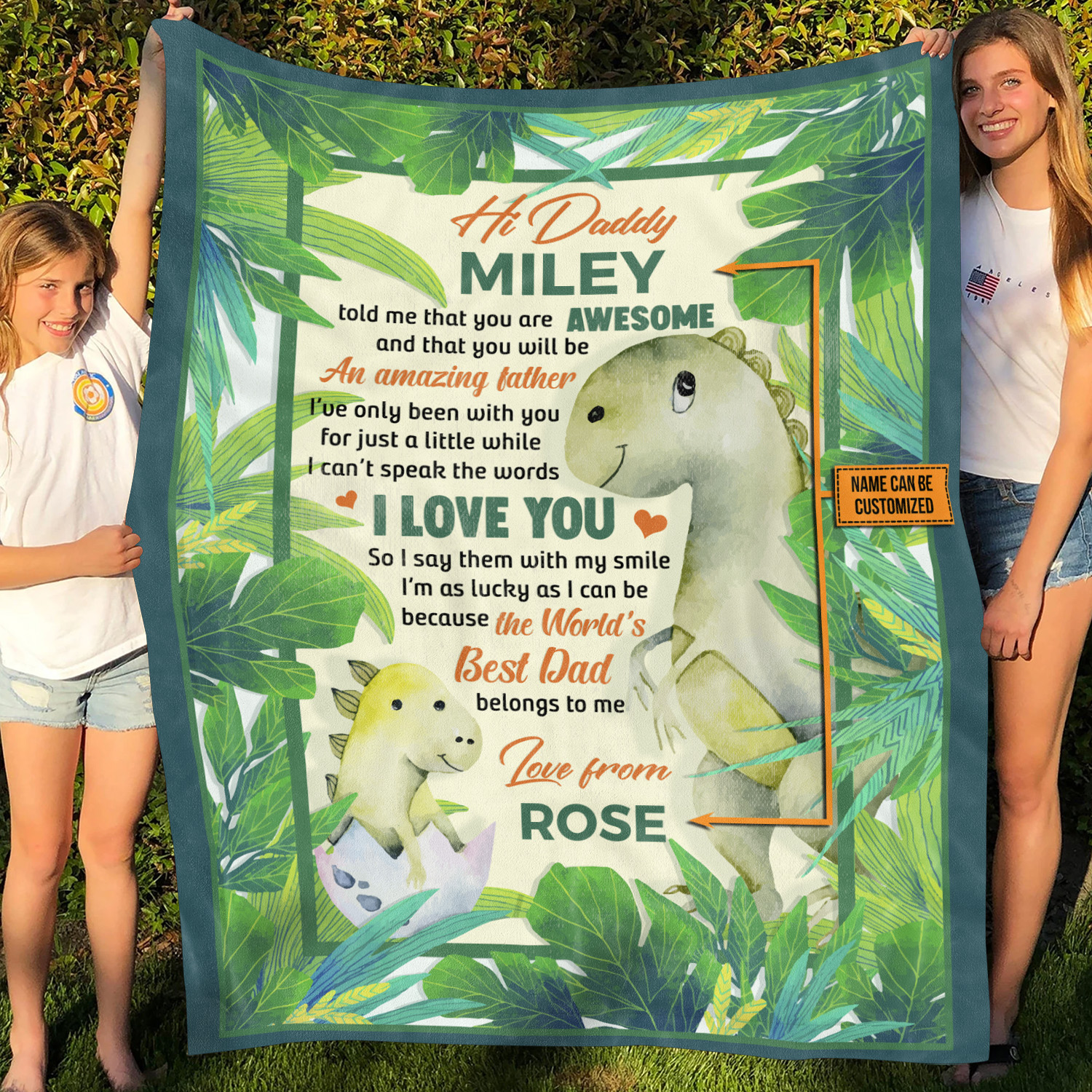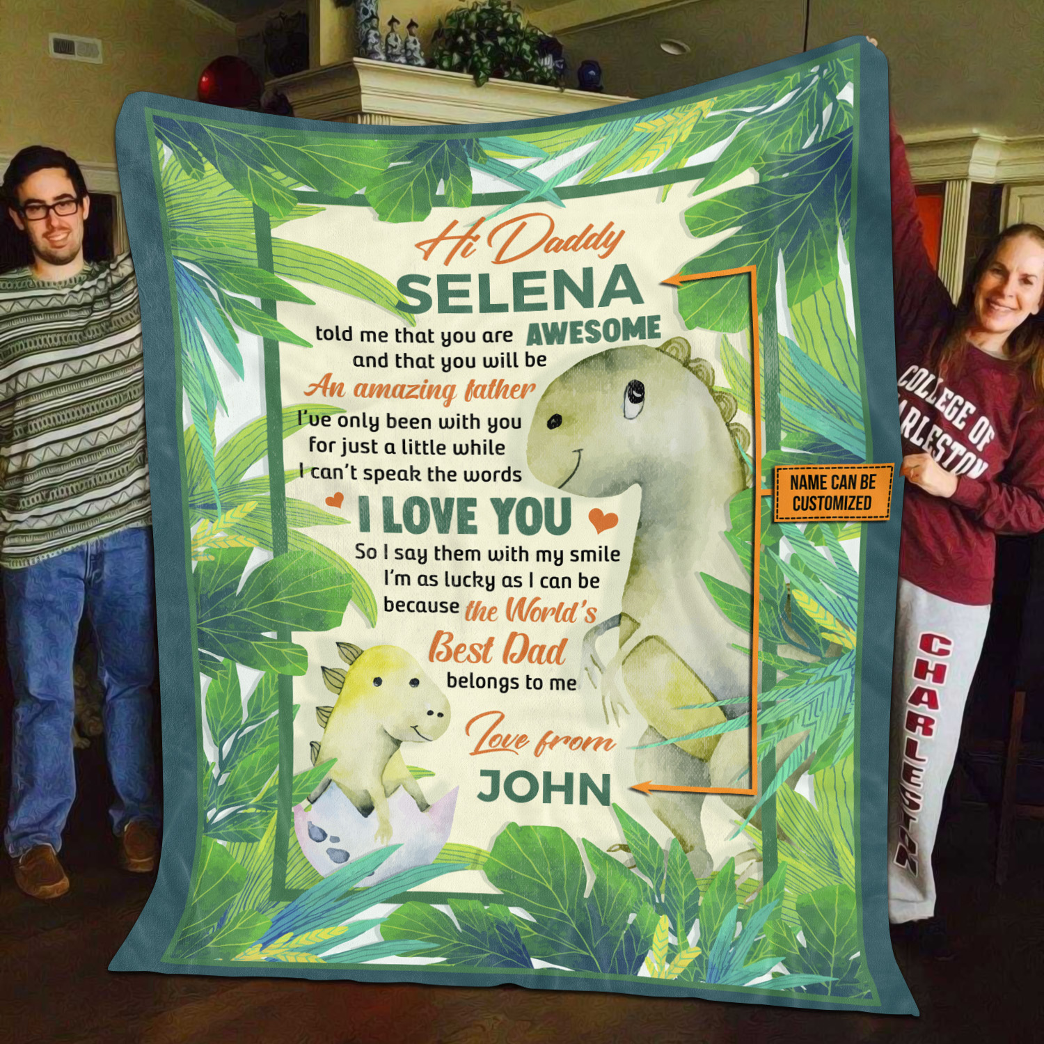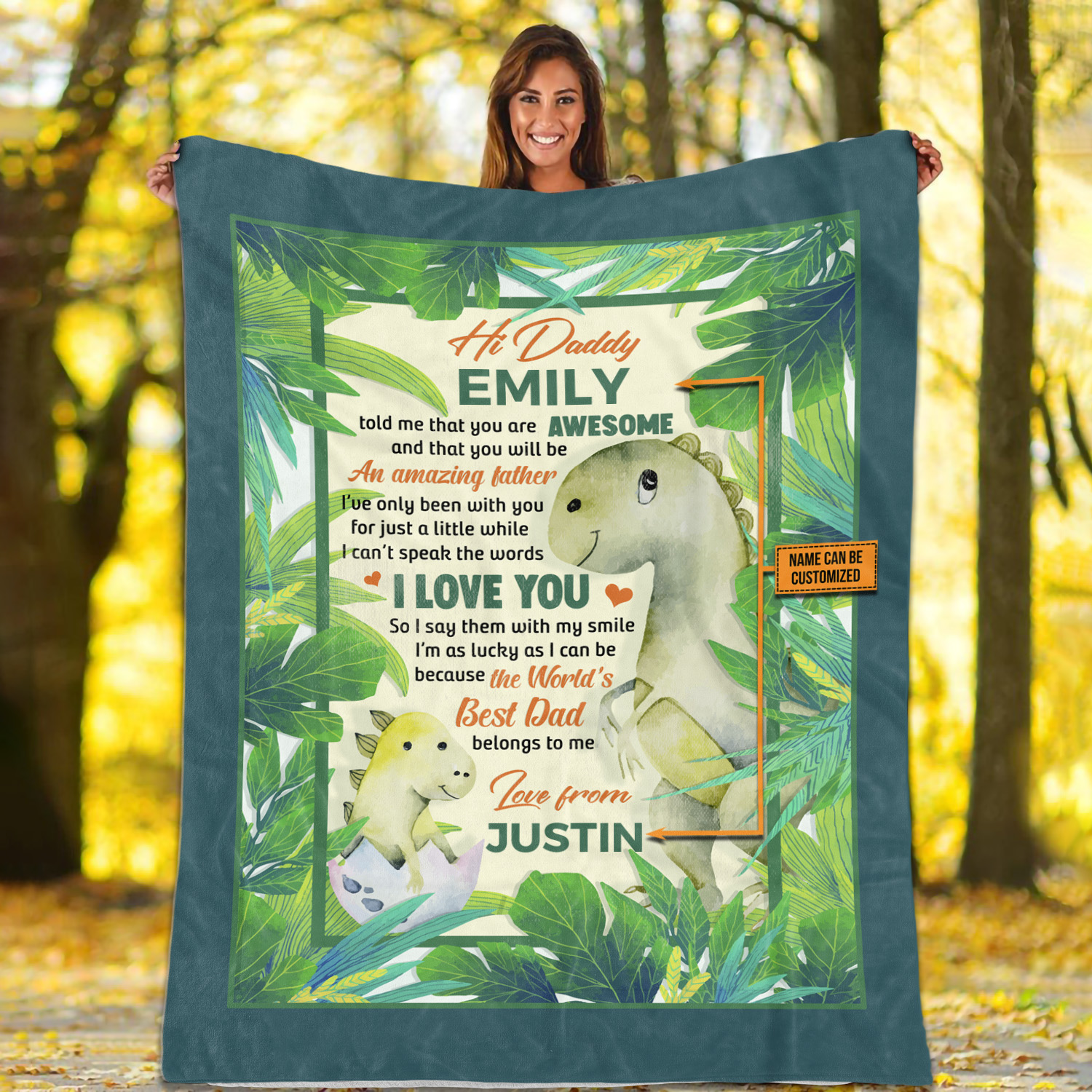 Let’s Shop Personalized Dinosaur Hi Daddy Mommy Told Me That You Are Awesome Fleece Blanket – Mink Sherpa Blanket – Woven Blanket!