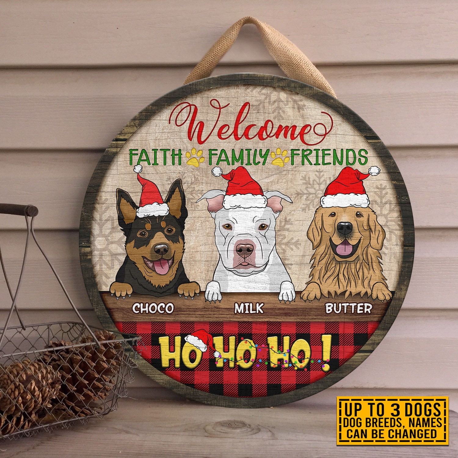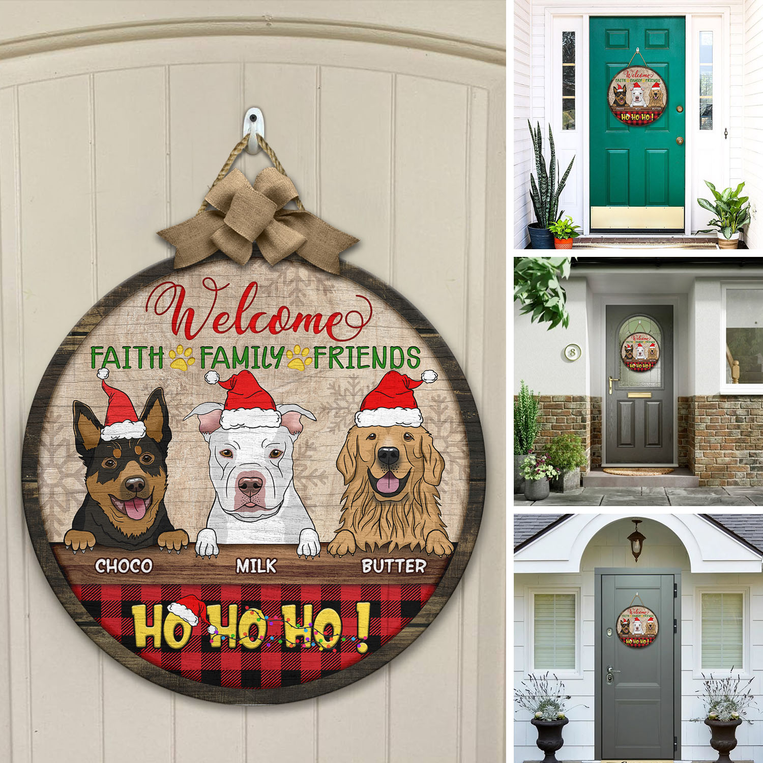 Let’s Shop Personalized Dog Breeds Welcome Faith Family Friends Ho Ho Ho Wooden Door Sign – Christmas Front Porch Sign Outdoor!