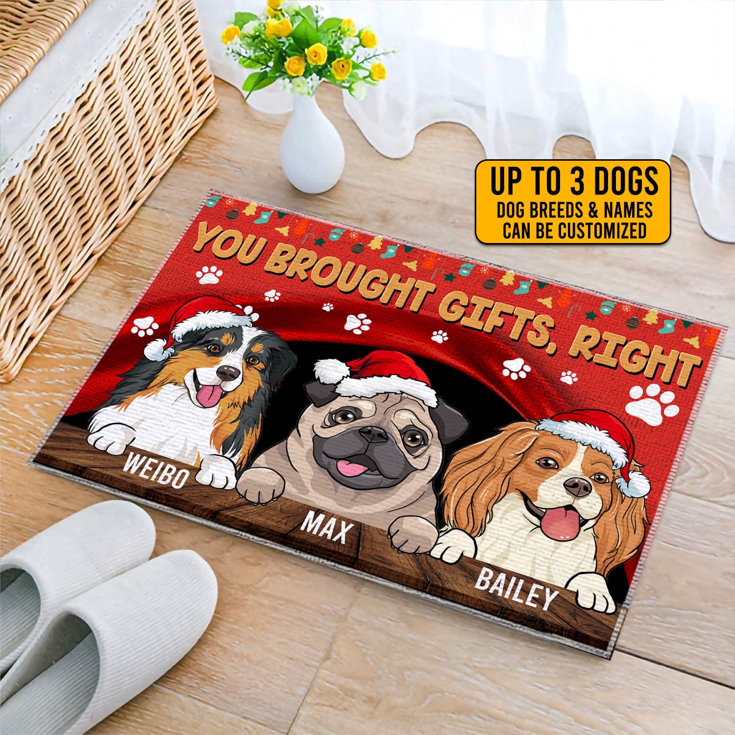 Let’s Shop Personalized Dog Breeds You Brought Gifts Right Doormat – Custom Christmas Doormat For Dog Lovers!