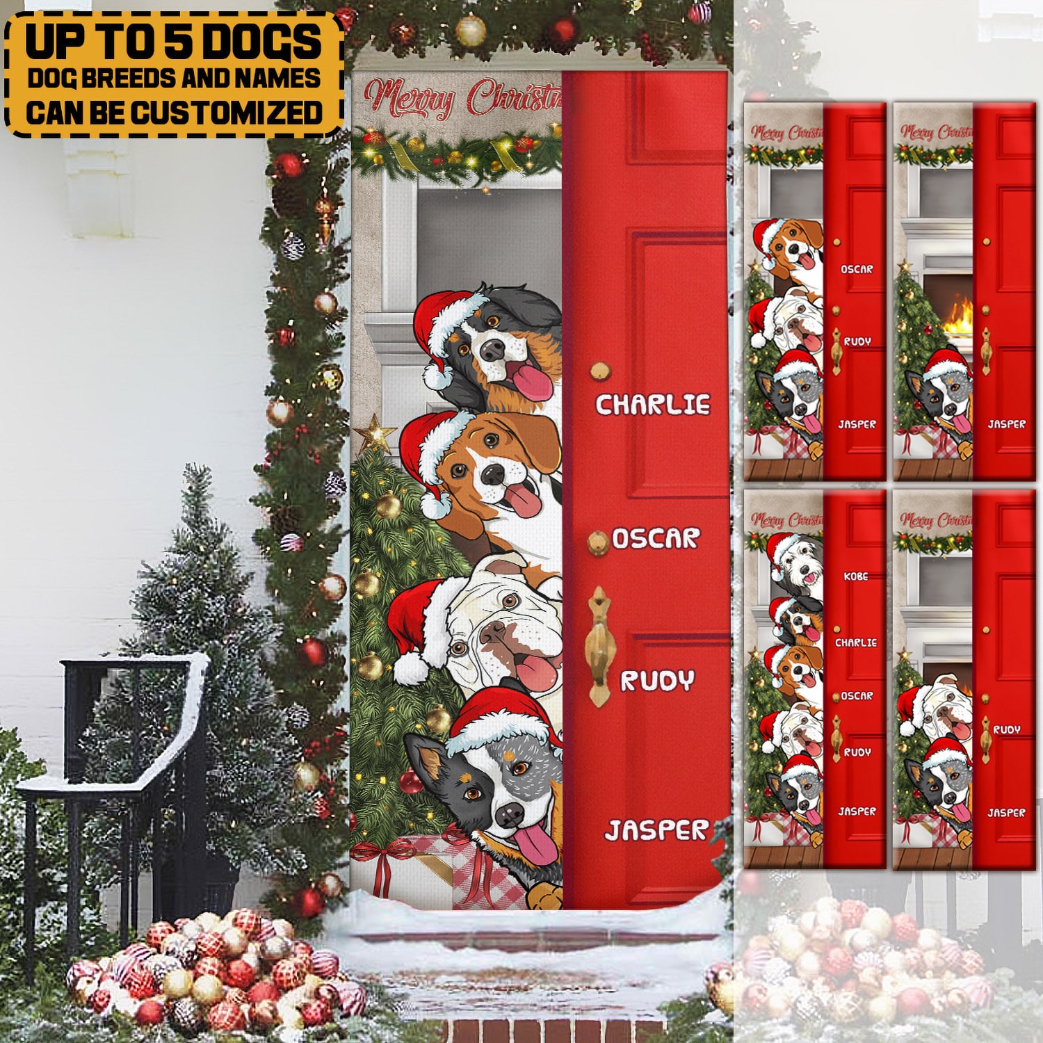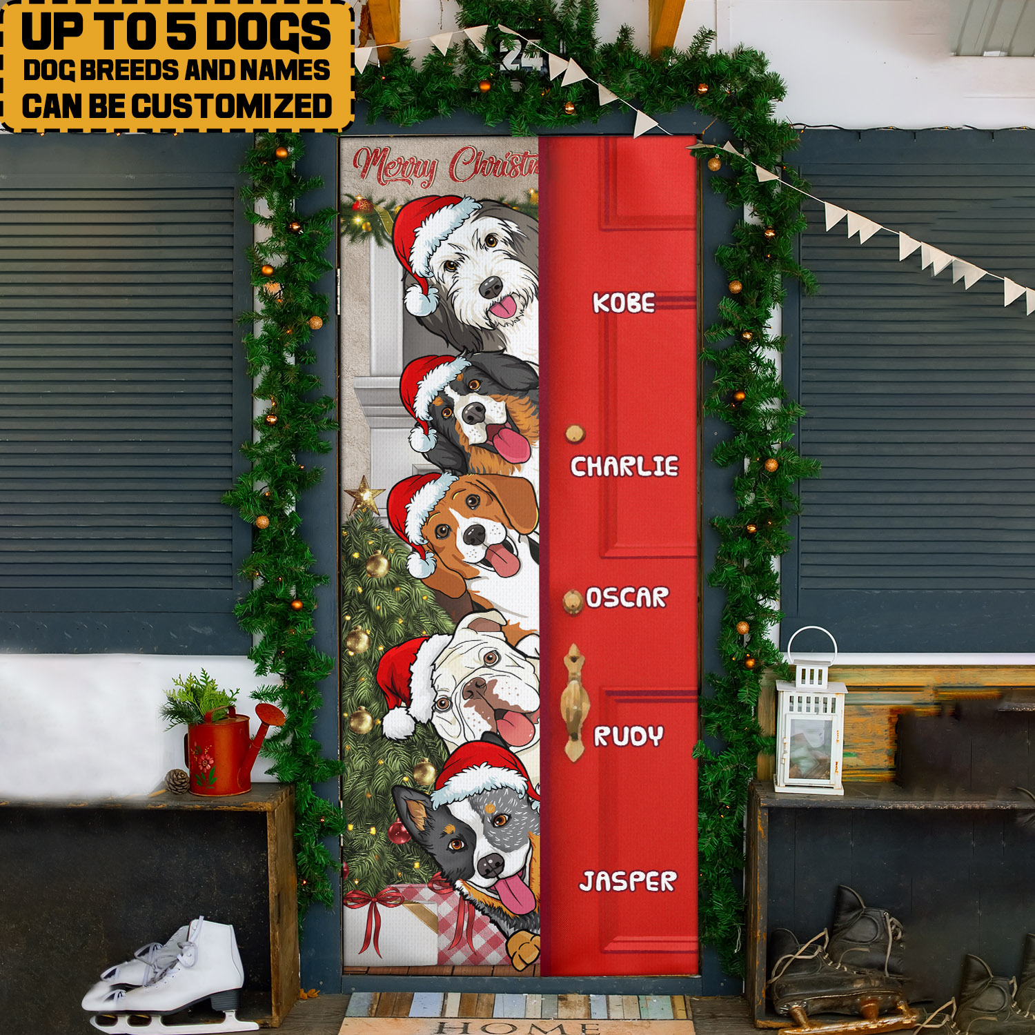 Let’s Shop Personalized Dog Christmas Decorative Door Cover – Custom Christmas Dog Breeds Door Banner!