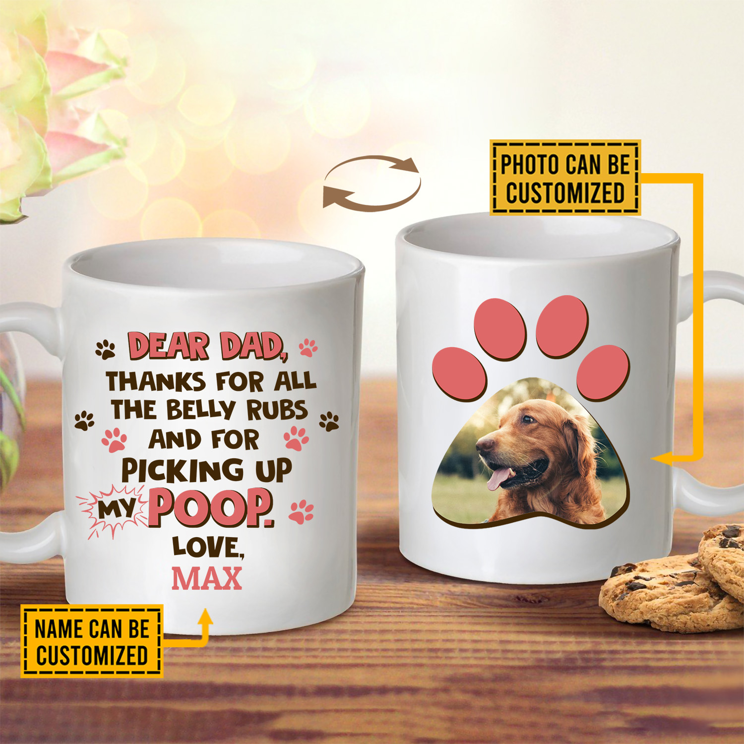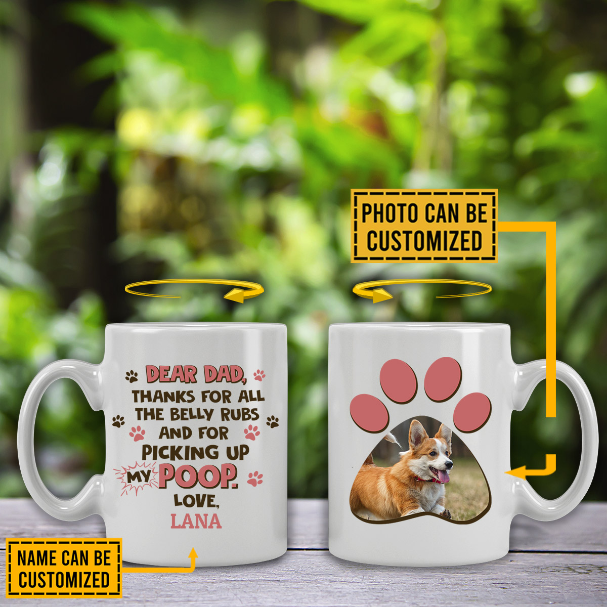 Let’s Shop Custom Photo Dear Dad Thanks For All The Belly Rubs And For Picking Up My Poop Print On 2 Sides Ceramic Coffee Mug!