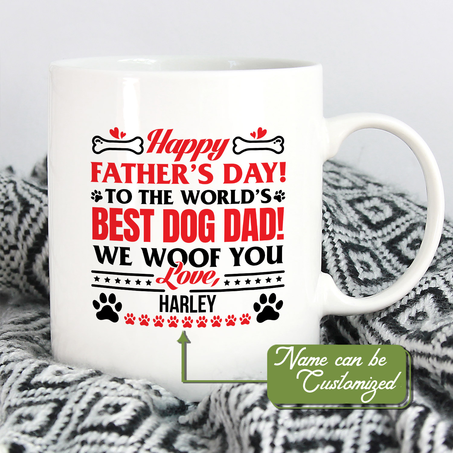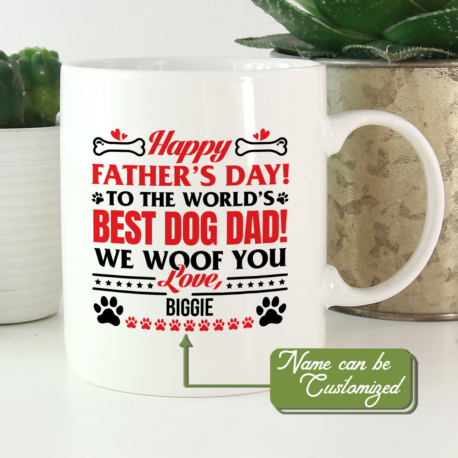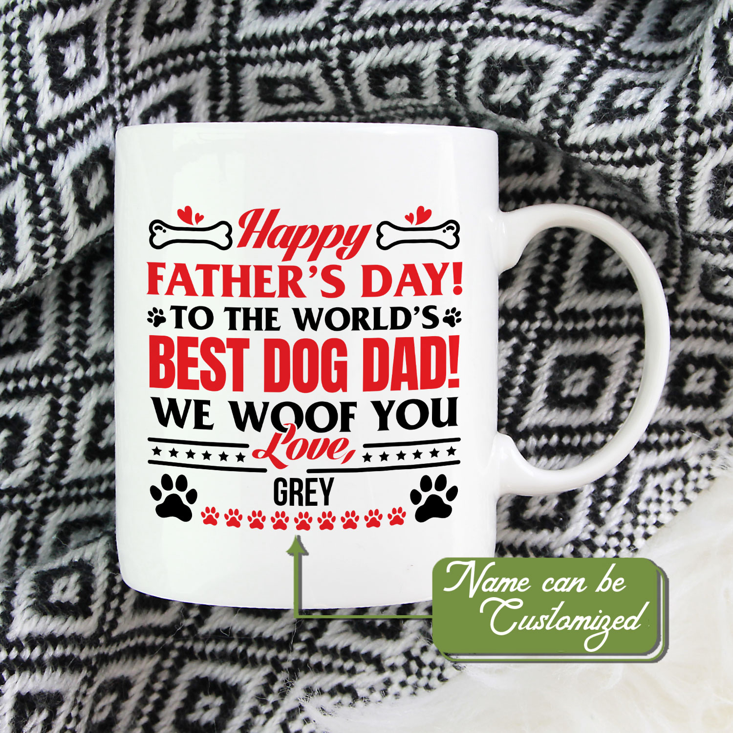 Let’s Shop Personalized Happy Father’s Day To The World’s Best Dog Dad We Woof You Coffee Mug – Gift For Dog Lovers!