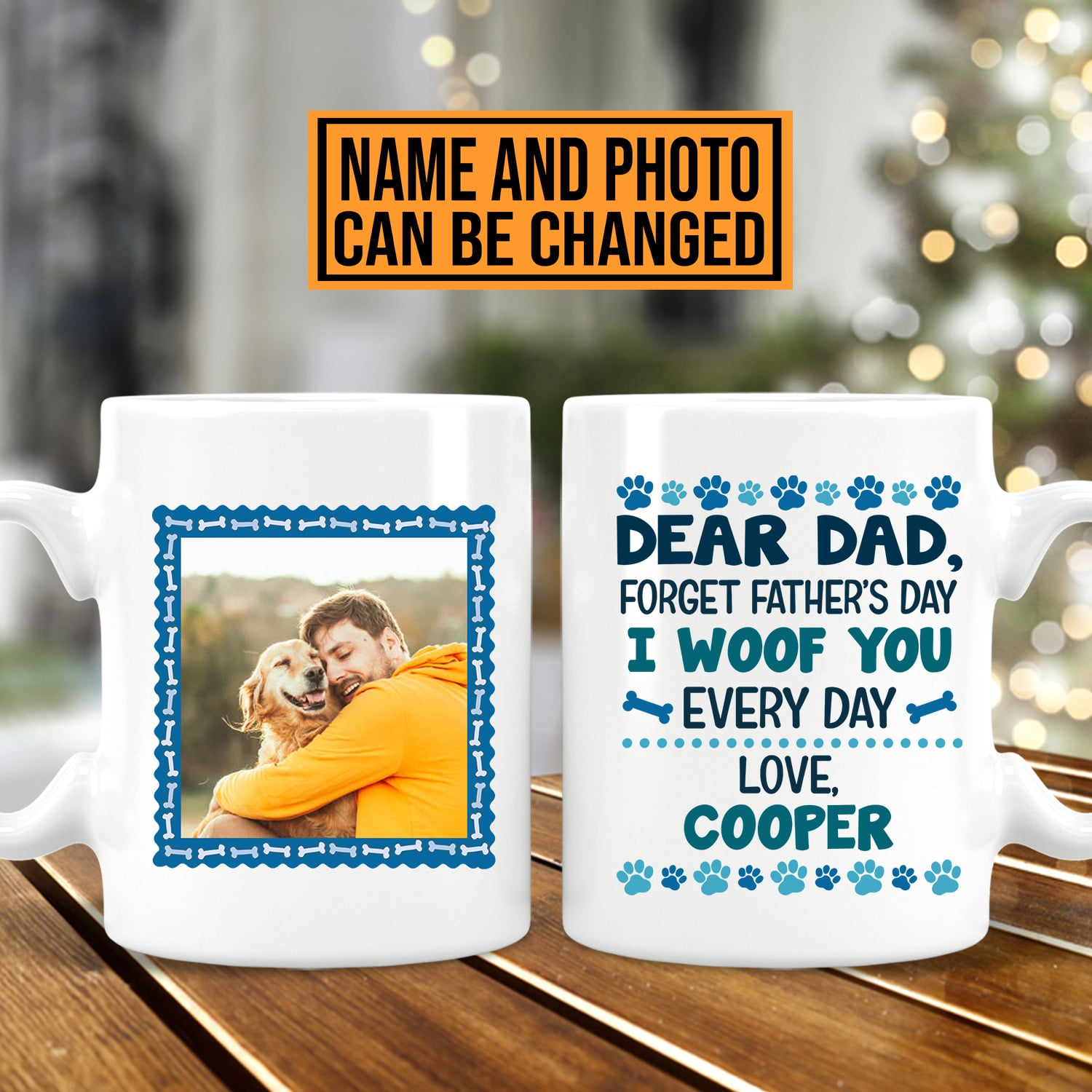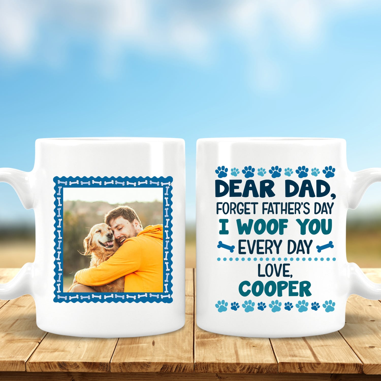 Let’s Shop Personalized Photo Dear Dad Forget Father’s Day I Woof You Every Day Print On 2 Sides Ceramic Coffee Mug!