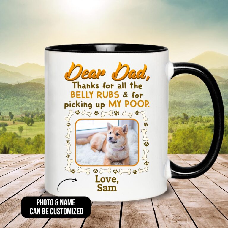 Let’s Shop Personalized Photo Dear Dad Thanks For All The Belly Rubs And For Picking Up My Poop Accent Mug – Coffee Mug!