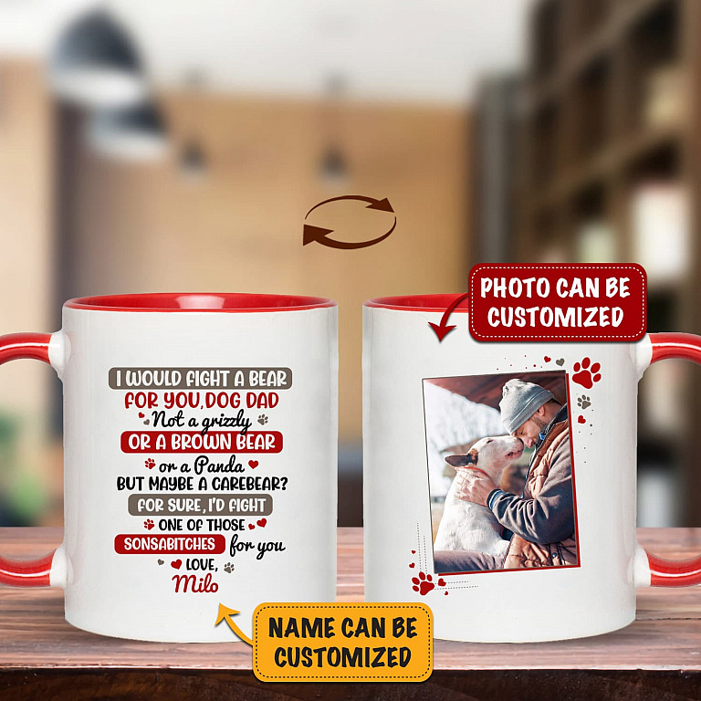 Let’s Shop Personalized Photo I Would Fight A Bear For You Dog Dad Print On 2 Sides Accent Mug – Ceramic Coffee Mug!