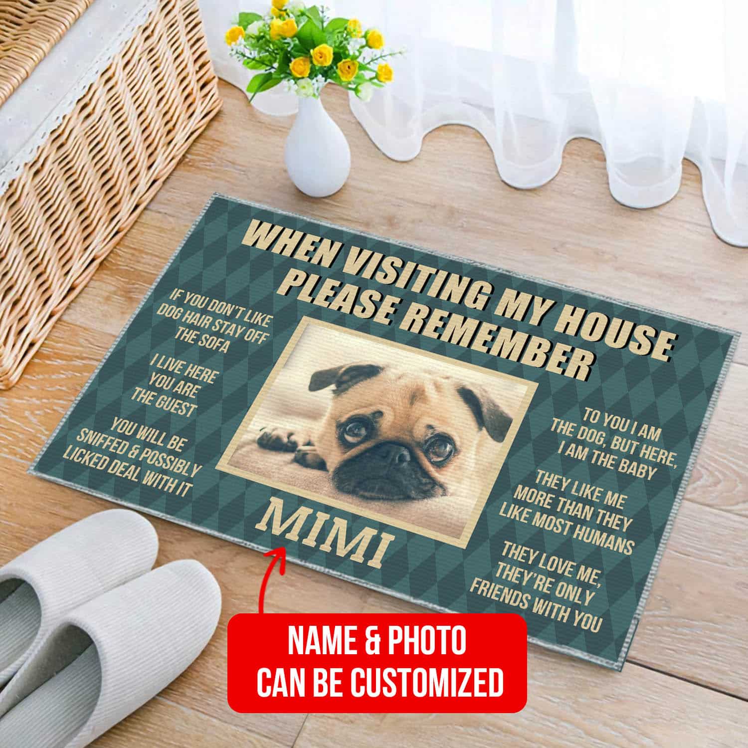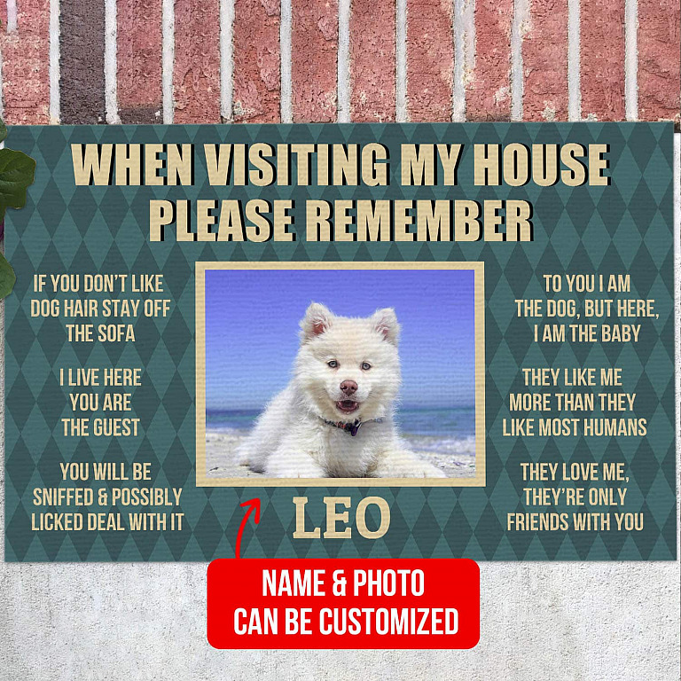Let’s Shop Custom Photo Dog When Visiting My House Please Remember Indoor Doormat – Personalized Dog Welcome Door Mat!