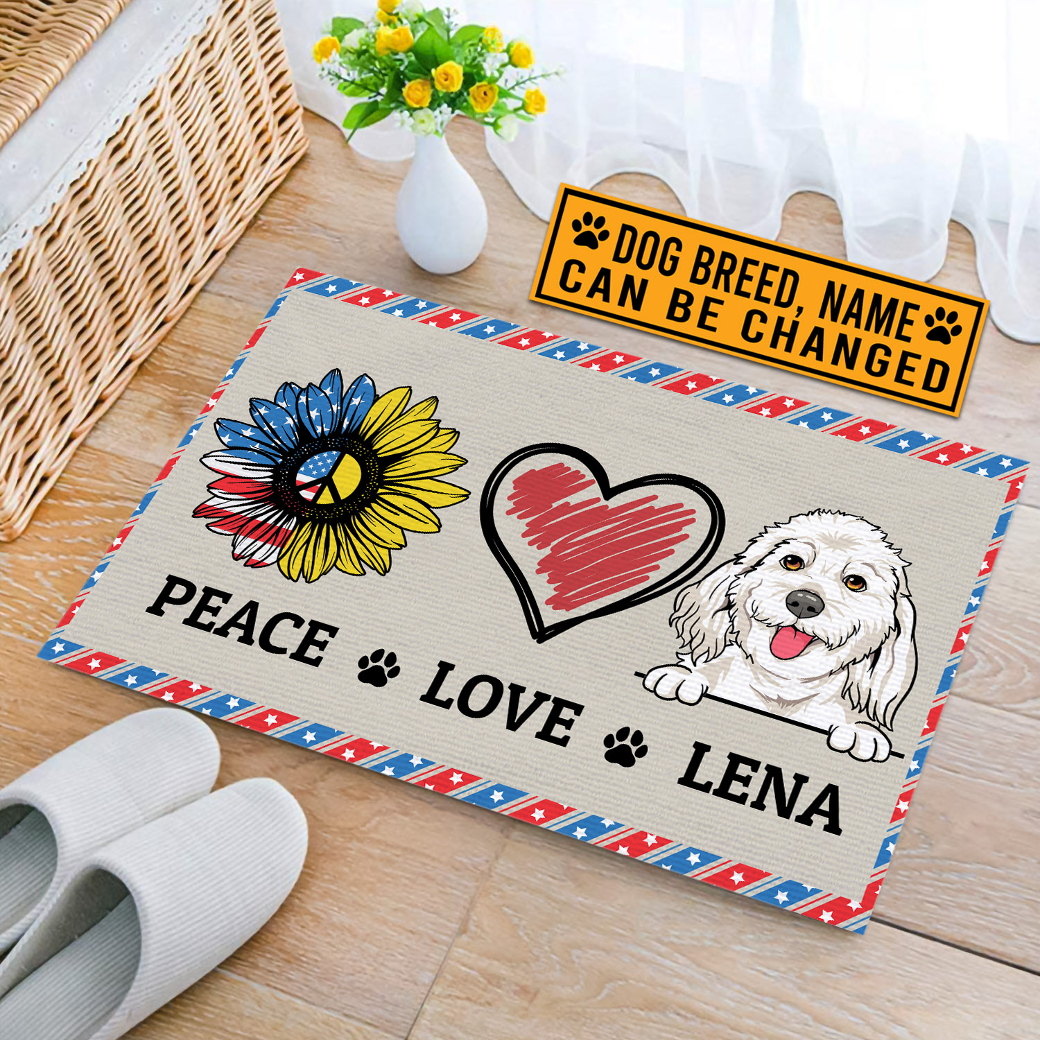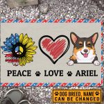 Let’s Shop Peace Love Dog Personalized Dog Breed Indoor Outdoor Doormat – Custom Dog Door Mat – Dog Lover Gifts!