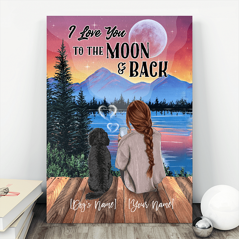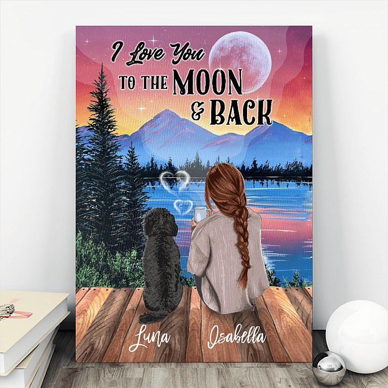 Personalized Dog I Love You to the Moon N Back Gallery Wrapped Framed Canvas Prints – Unframed Poster