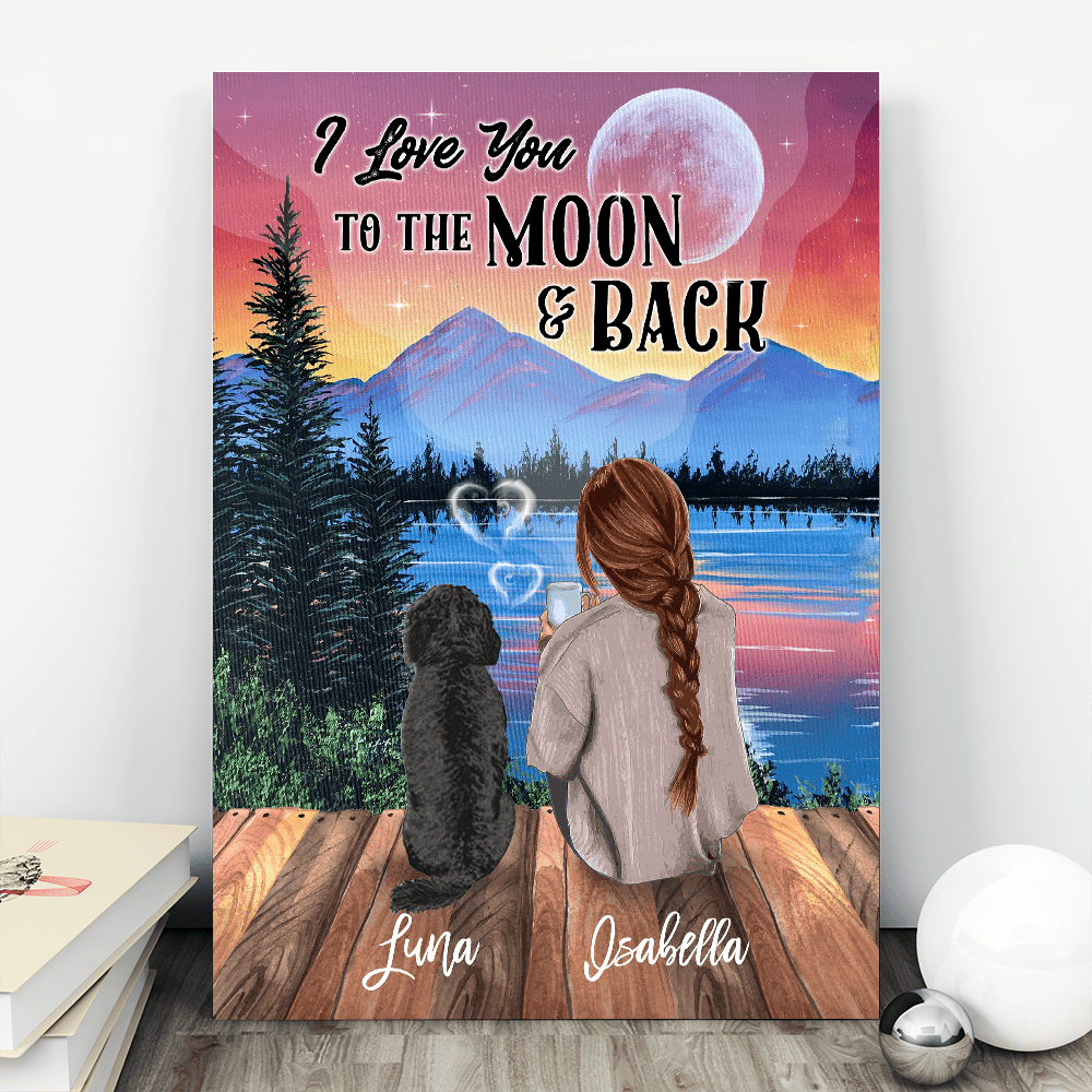 Shop Personalized Dog I Love You to the Moon N Back Gallery Wrapped Framed Canvas Prints – Unframed Poster.