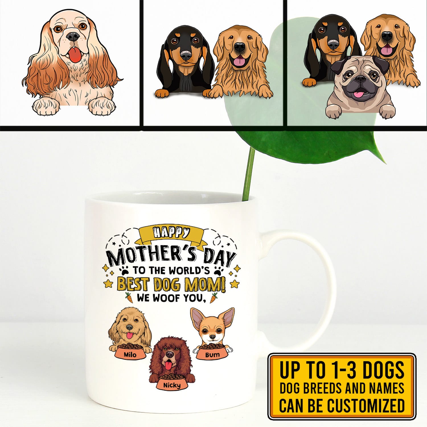 Let’s Shop Personalized Dog Breeds Happy Mother’s Day To The Worlds’s Best Dog Mom We Woof You Ceramic Coffee Mug!