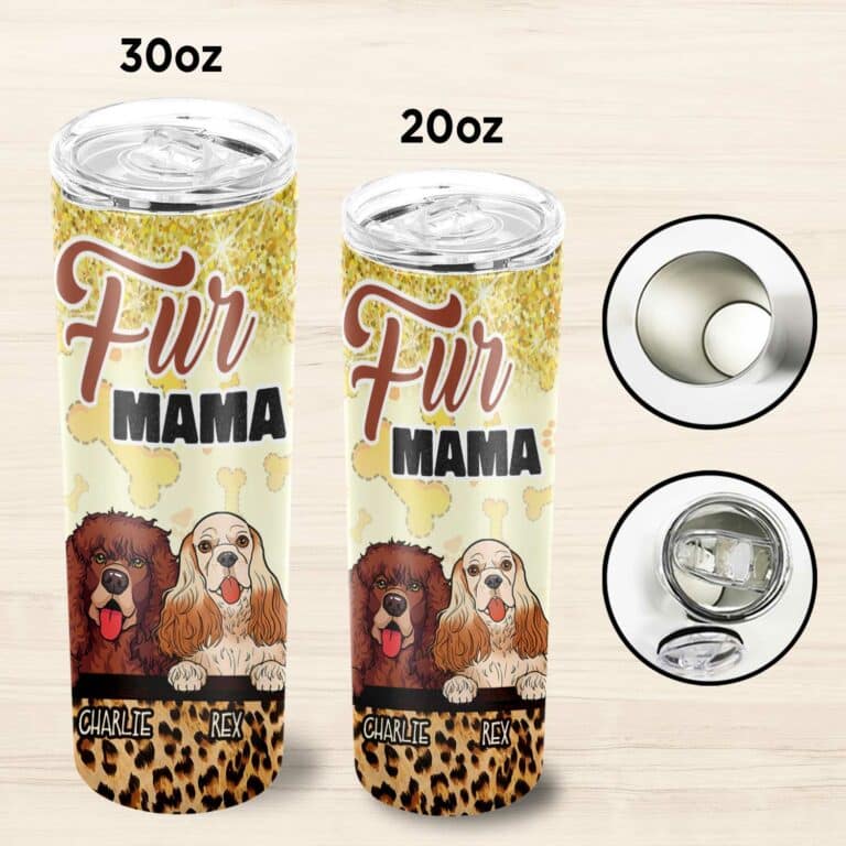 Let’s Shop Personalized Dog Mom Tumbler Fur Mama, Dog Mom Glitter Skinny Tumbler, Straight Vacuum Insulated Tapered Tumbler Coffee Mug!