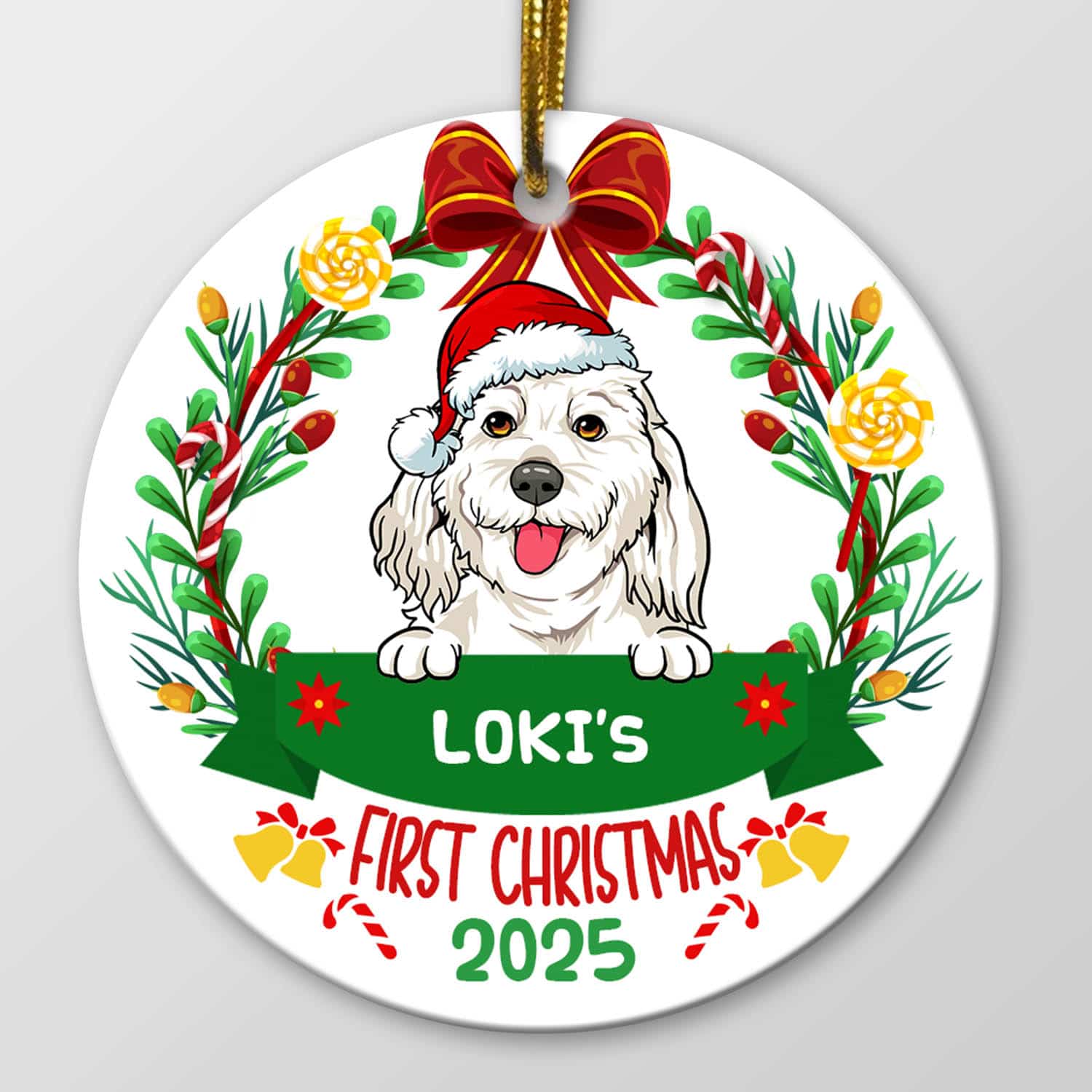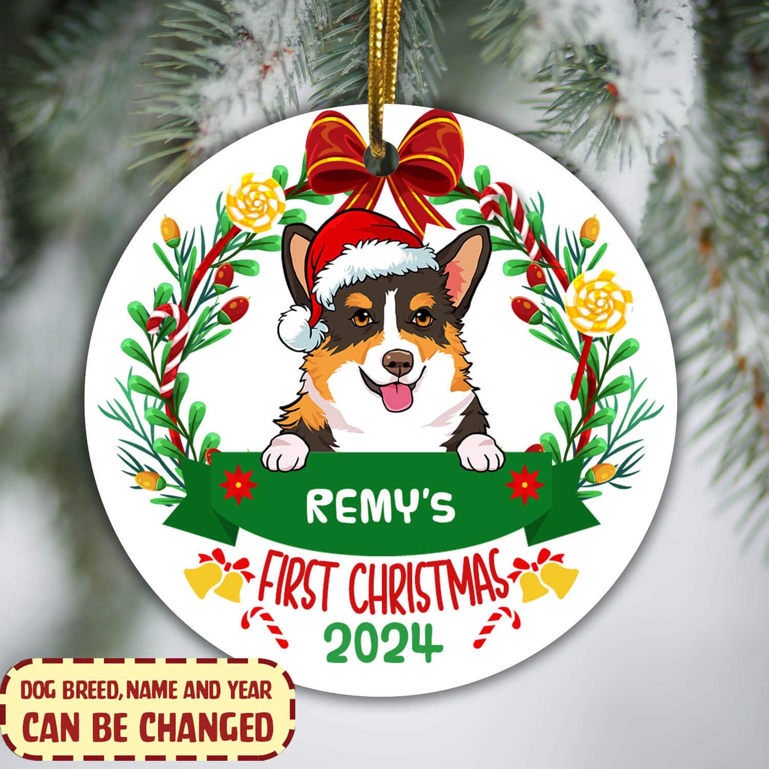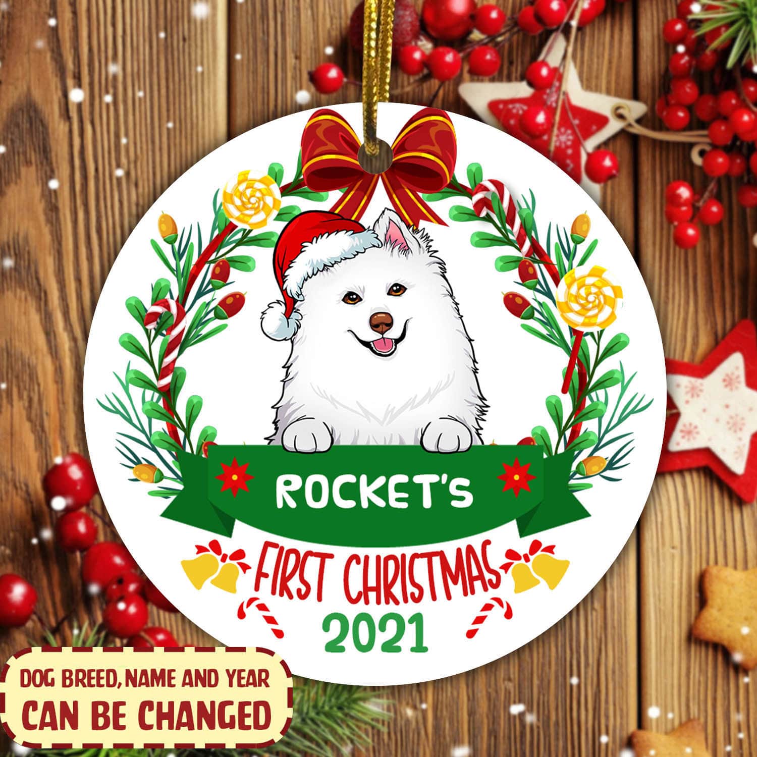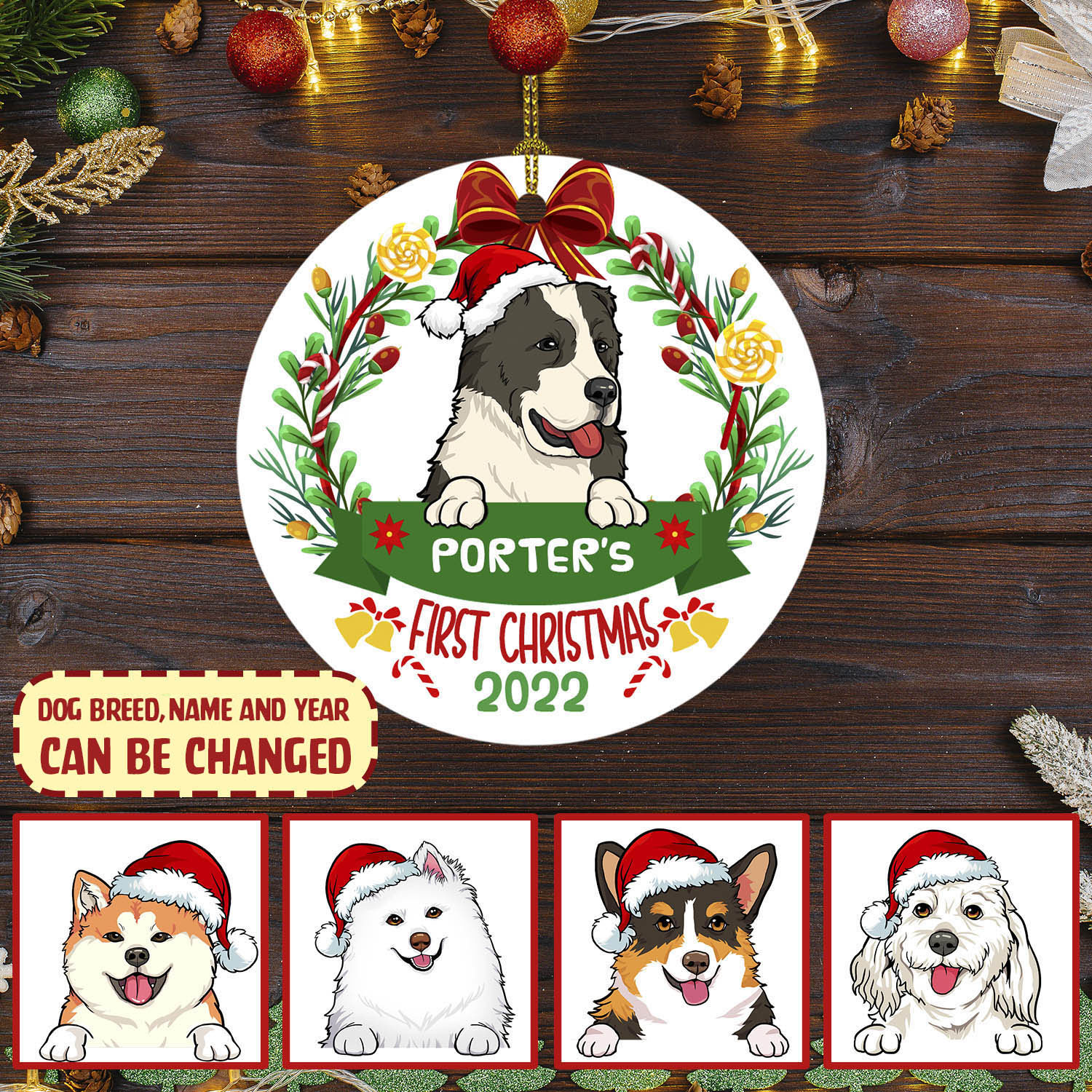 Let’s Shop Personalized First Christmas Decorative Christmas Ornament – Custom Dog Breeds Christmas Circle Ornament!