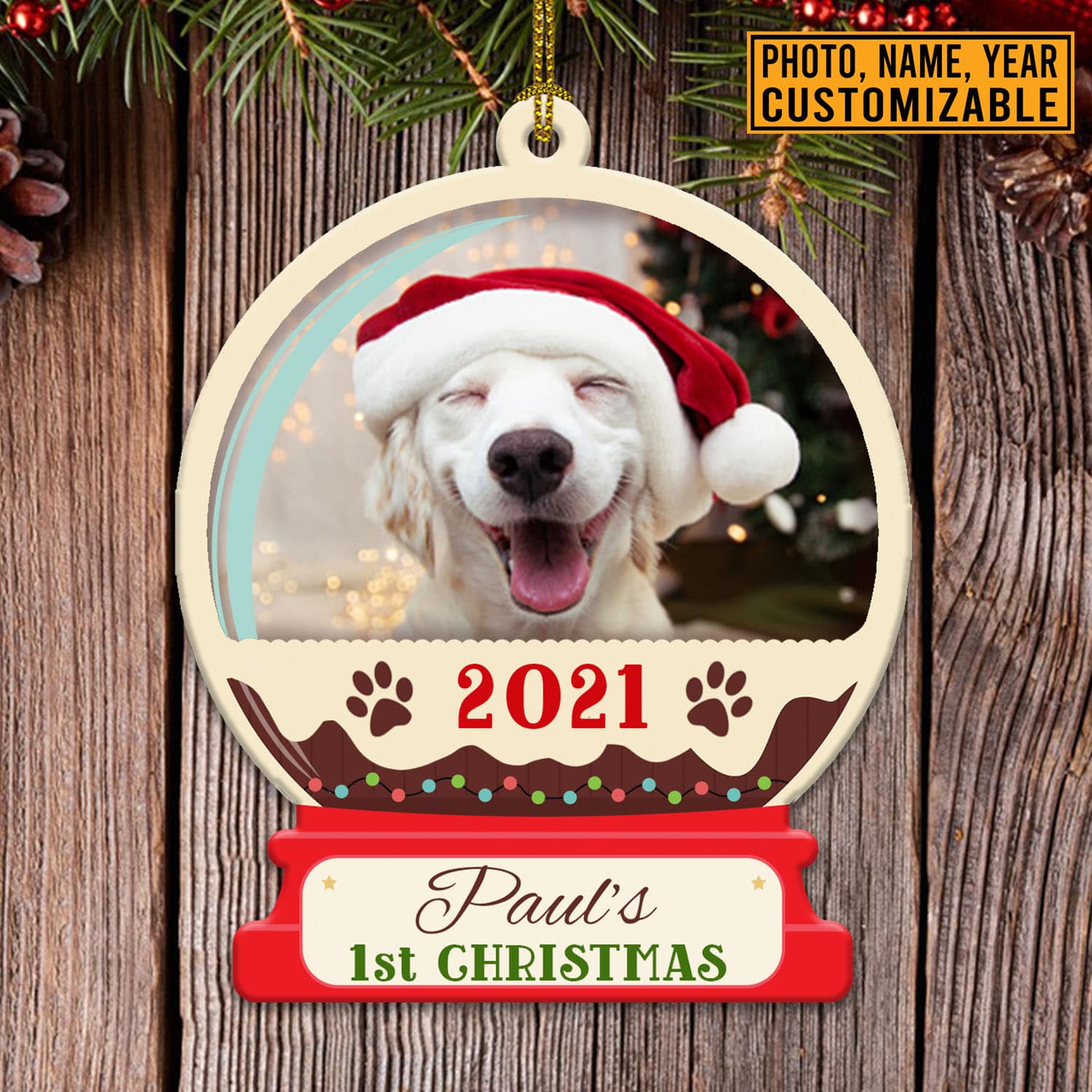 Let’s Shop Personalized Dog Photo First Christmas Snow Globe Custom Shaped Ornament – Custom Dog Christmas Ornaments!