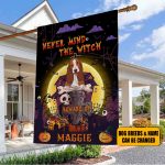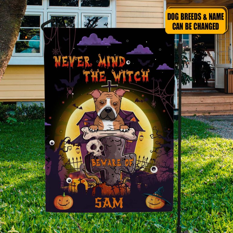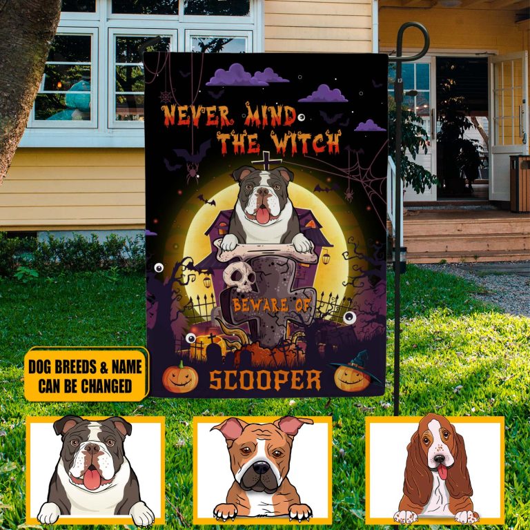 Let’s Shop Personalized Dog’s Breed Name Witch Halloween Haunted House Garden Flag – Never Mind The Witch Beware of Spooky Dog Halloween Custome Flag!