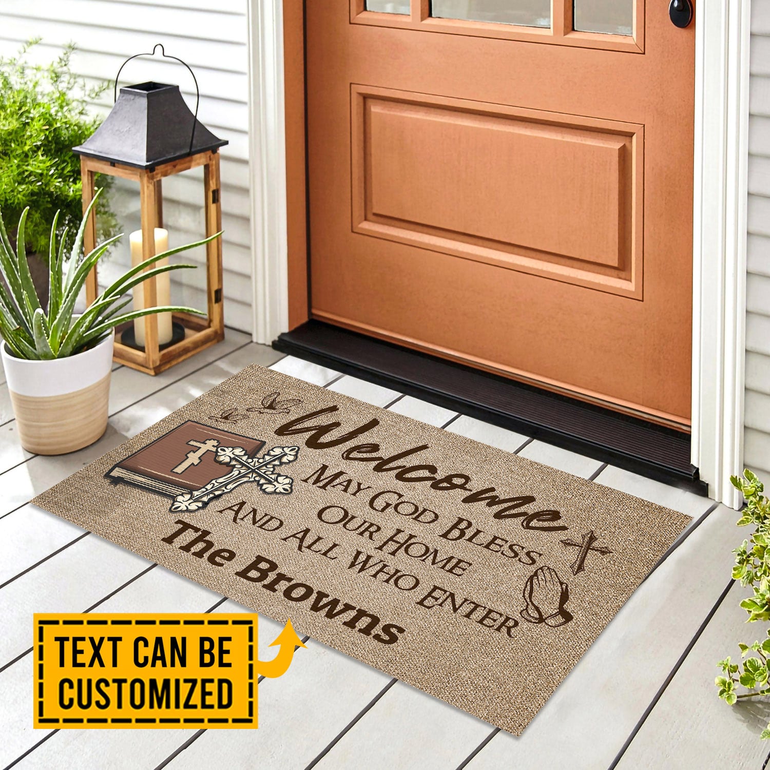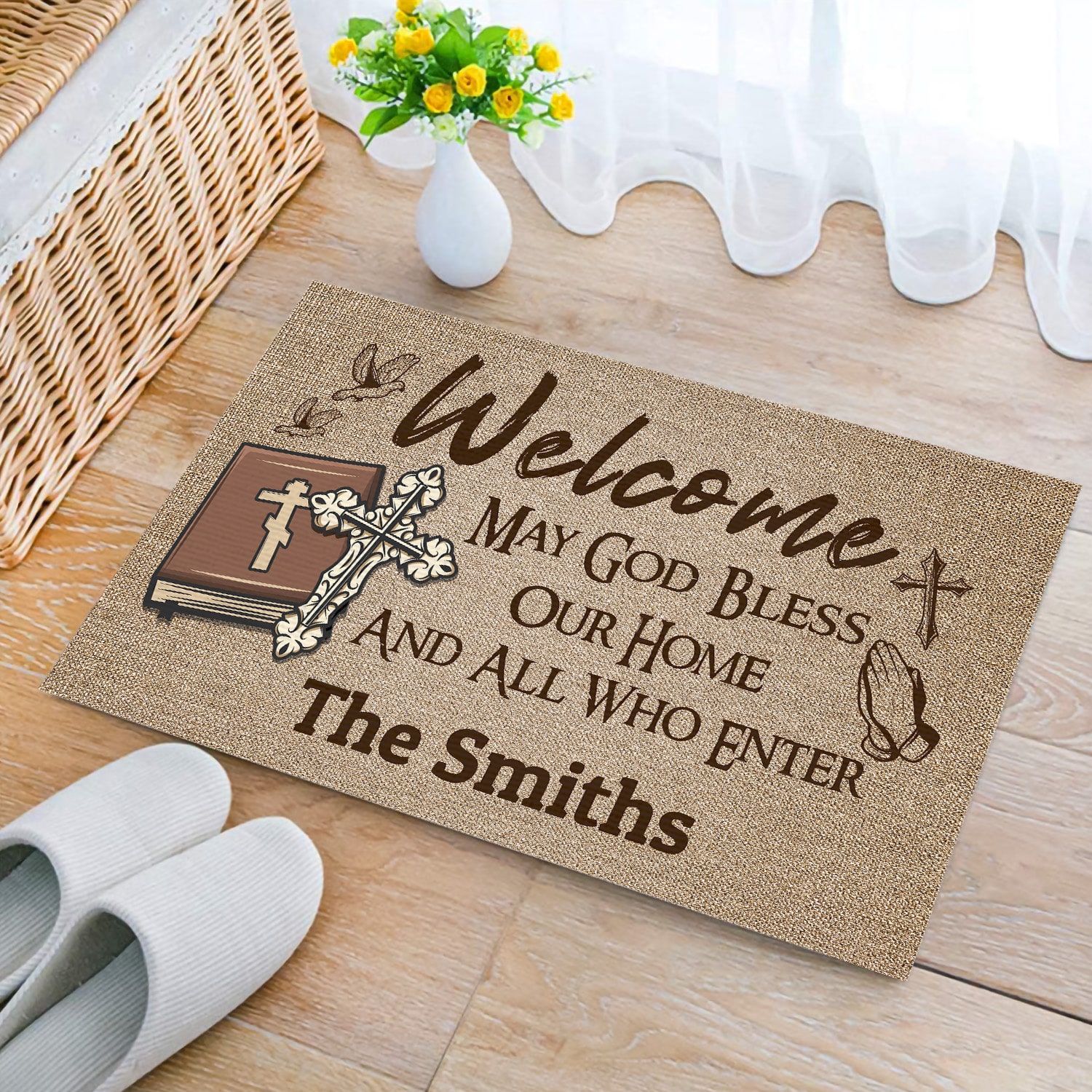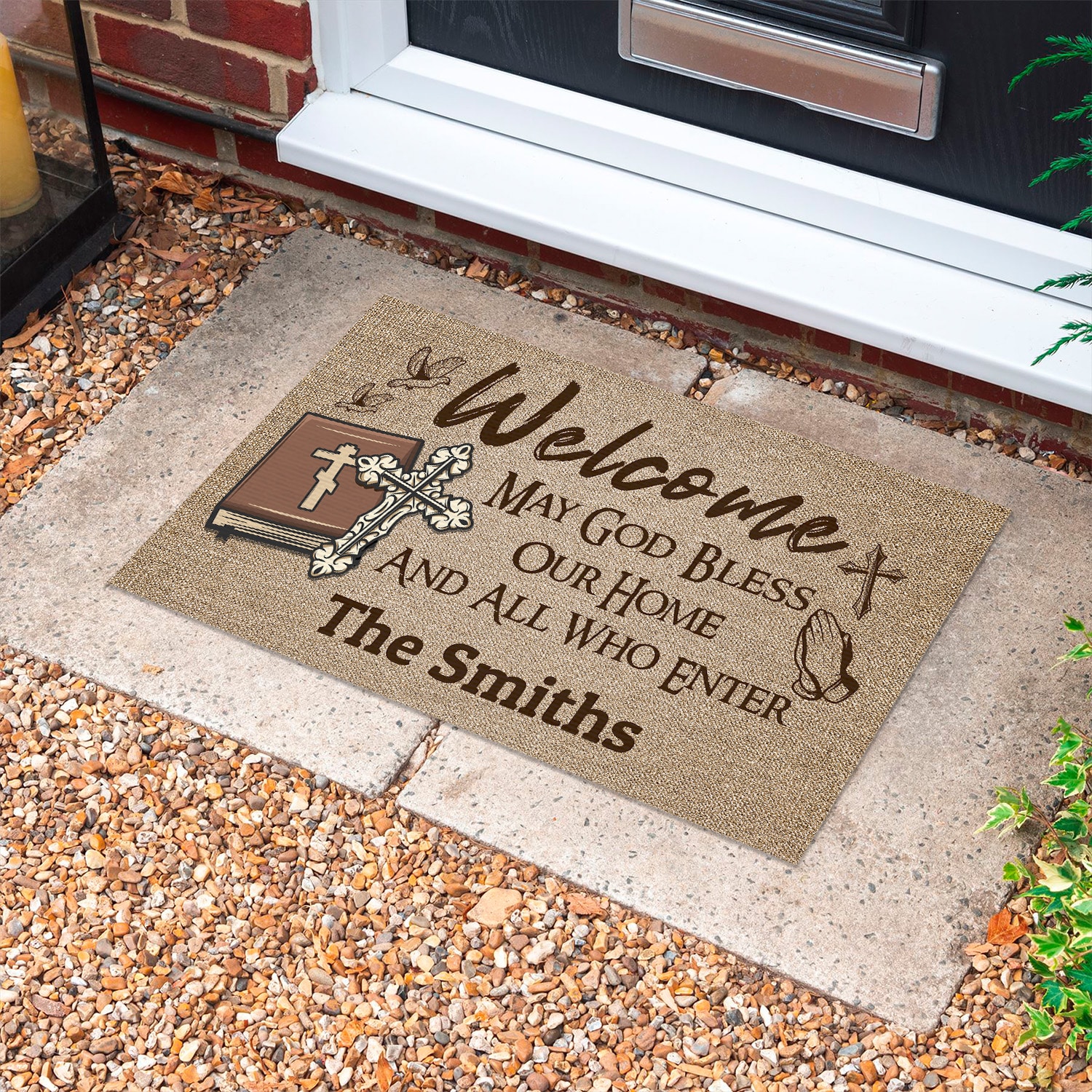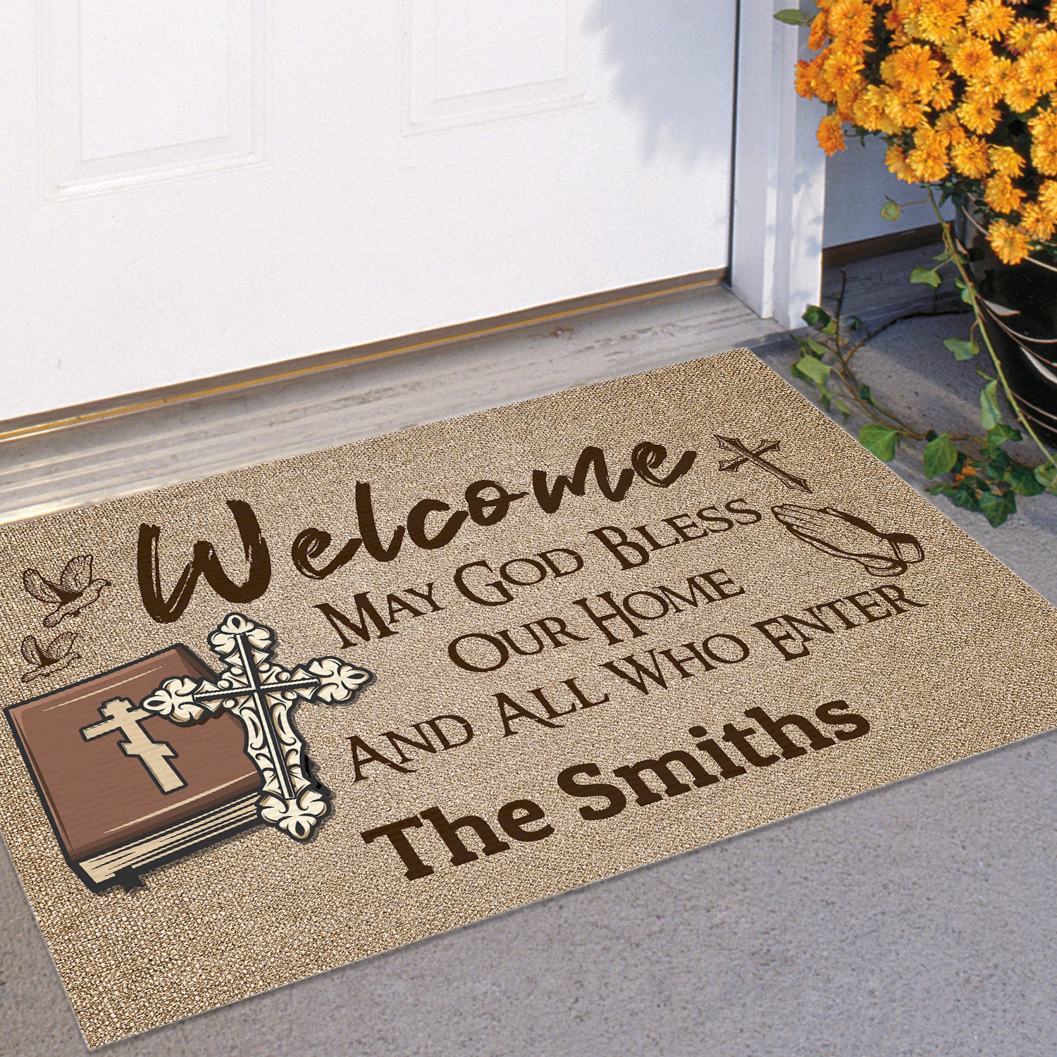 Let’s Shop Personalized Welcome May God Bless Our Home And All Who Enter Indoor Outdoor Doormat!
