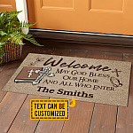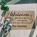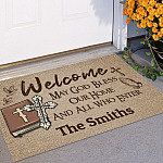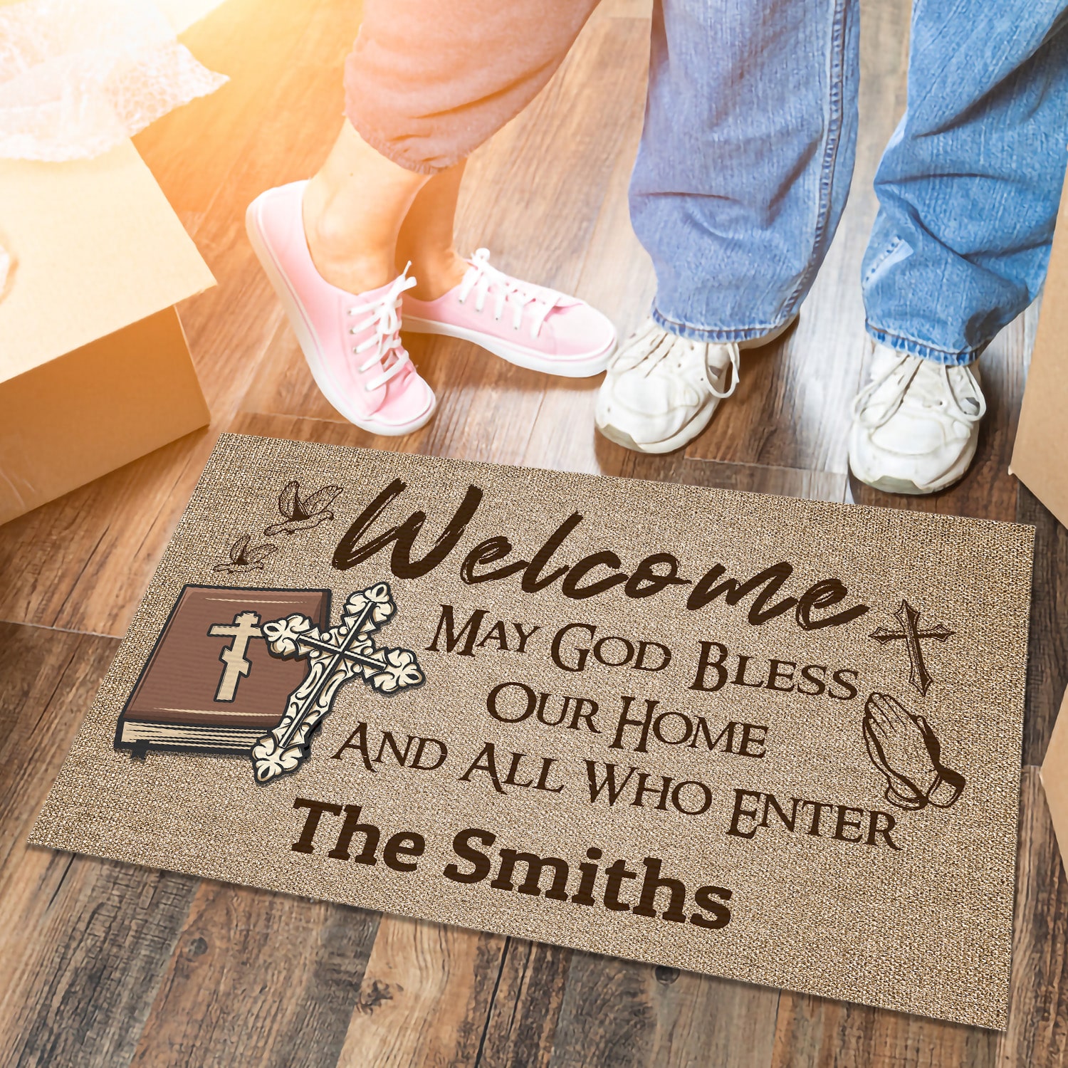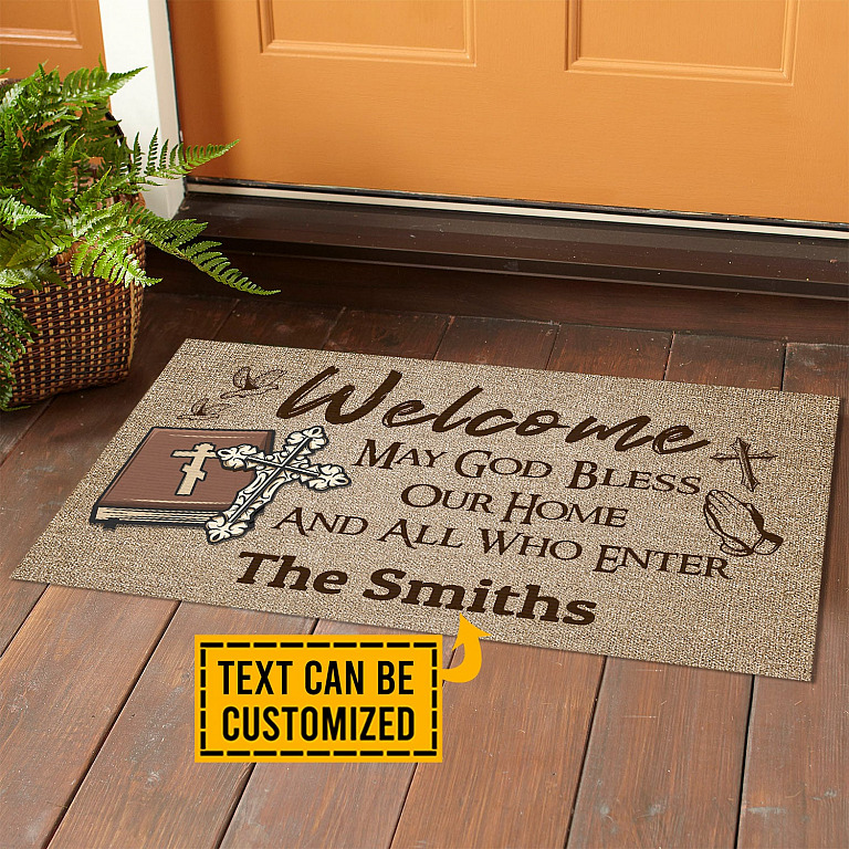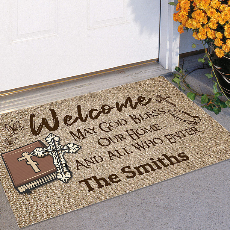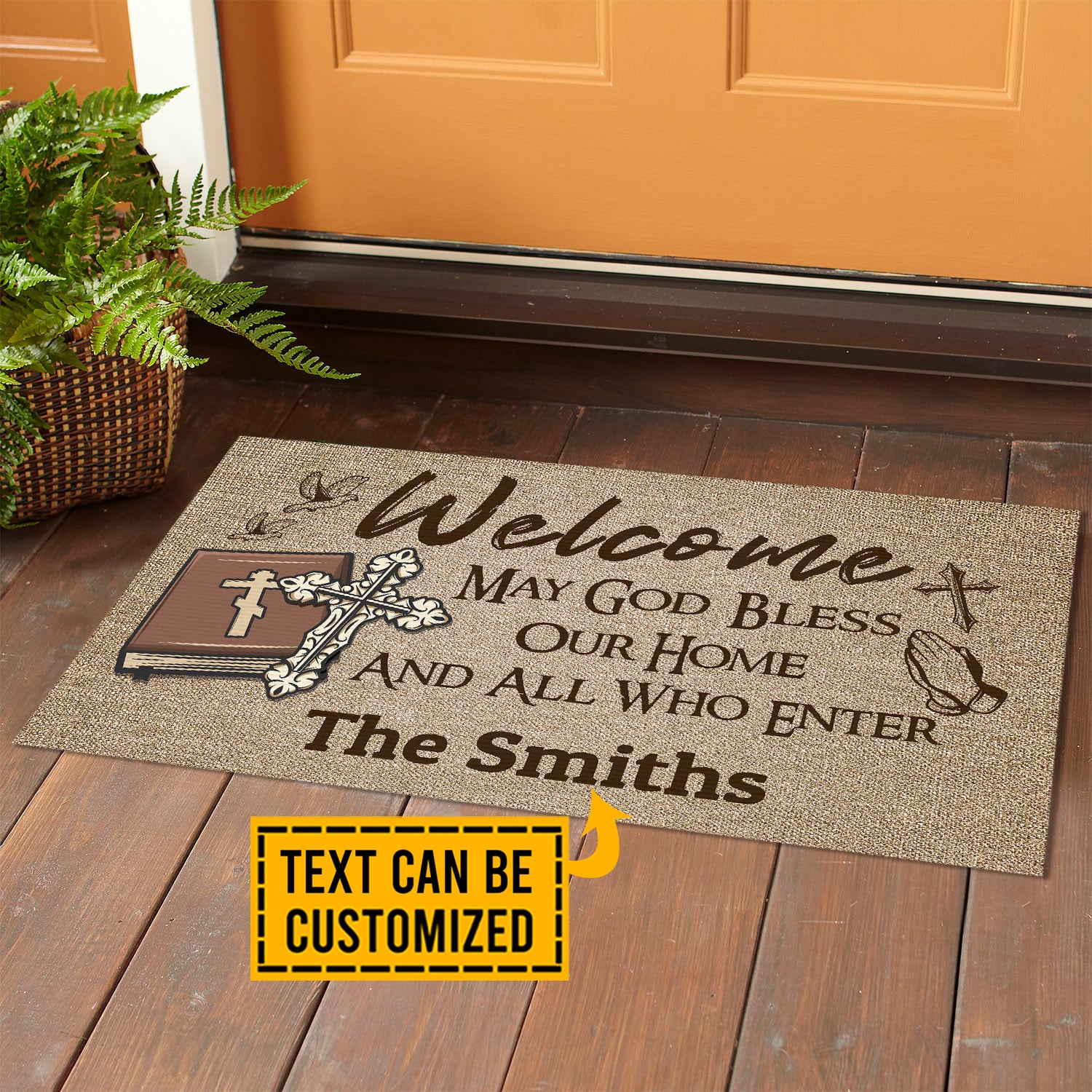 Let’s Shop Personalized Welcome May God Bless Our Home And All Who Enter Indoor Outdoor Doormat!