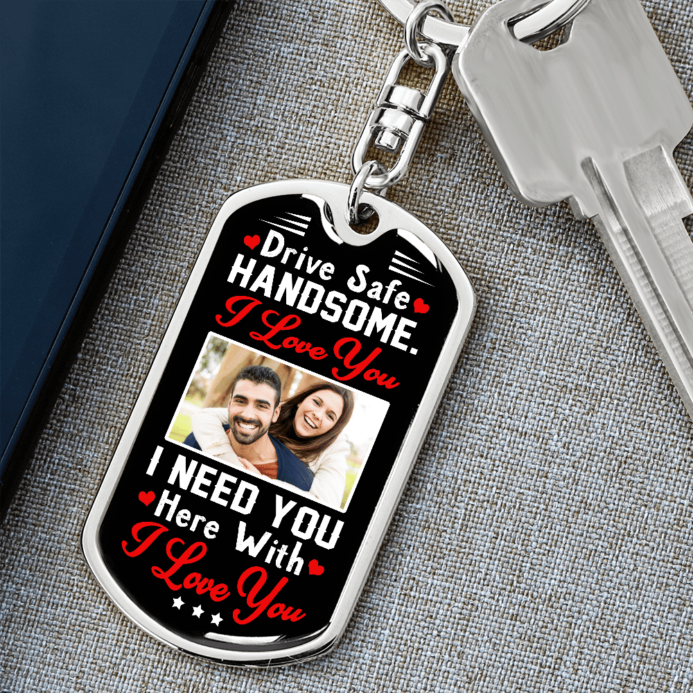 Let’s Shop Personalized Photo Drive Safe Handsome Keychain I Love You Gift for Husband Boyfriend Him – Custom Image Keychain Gift!