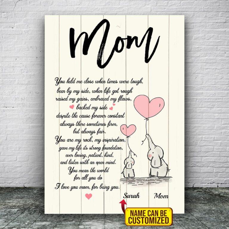 Let’s Shop Personalized Elephant Mom You Hold Me Close Framed Canvas – Unframed Poster – Elephant Mom Gifts From Daughter!