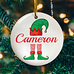 Let’s Shop Personalized Cute Elf Buddy Funny Christmas Flat Holiday Circle Ornament Keepsake!