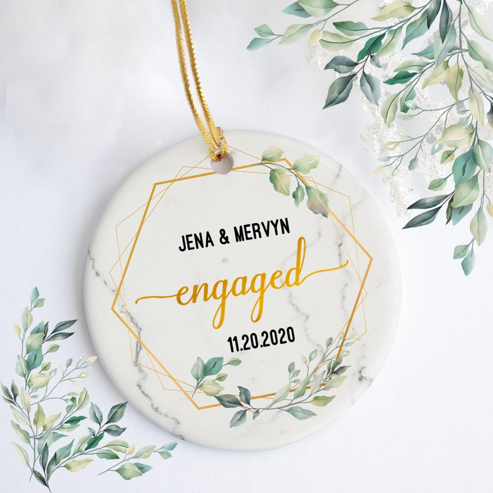 Let’s Shop Personalized Couple Engaged Christmas Ornament Keepsake – Circle Porcelain Ceramic Ornament!
