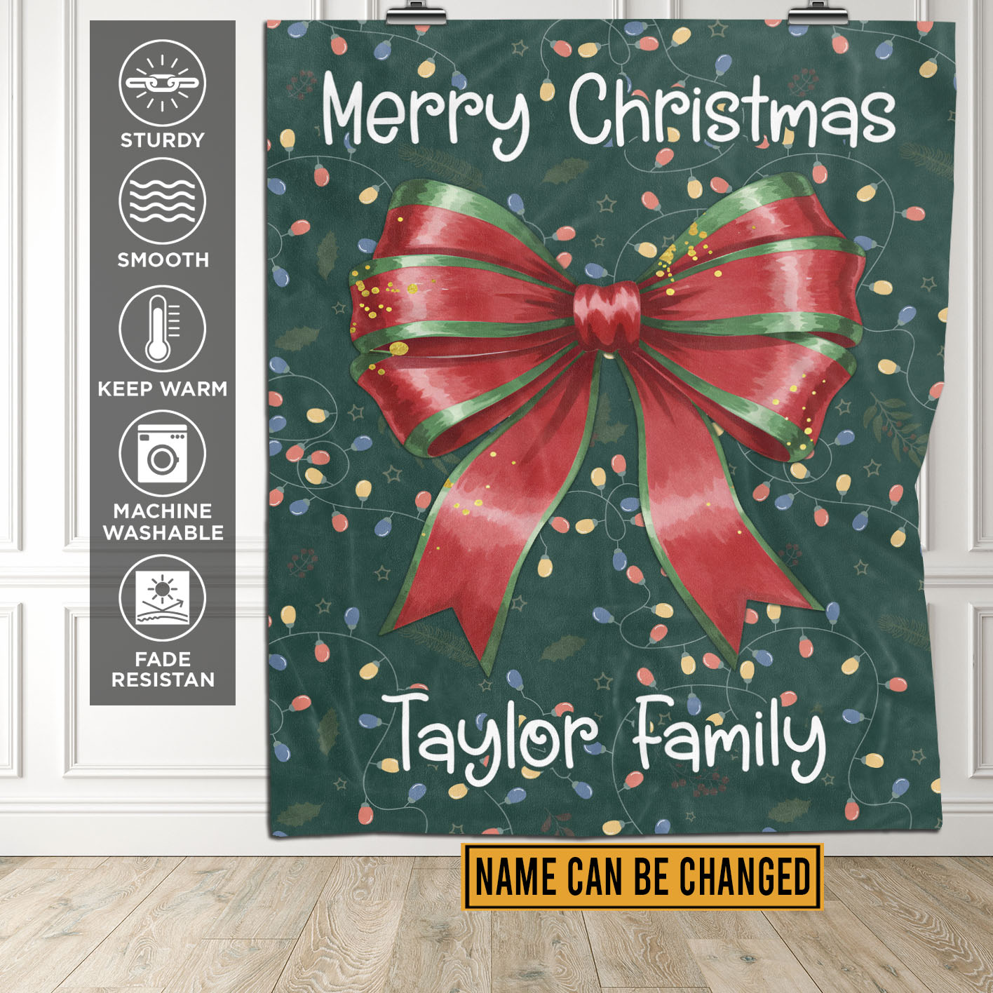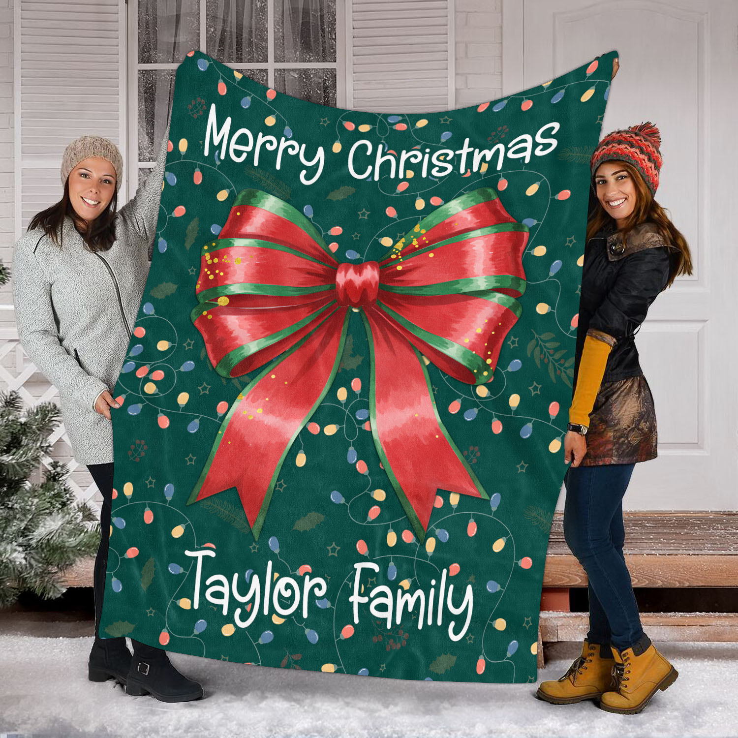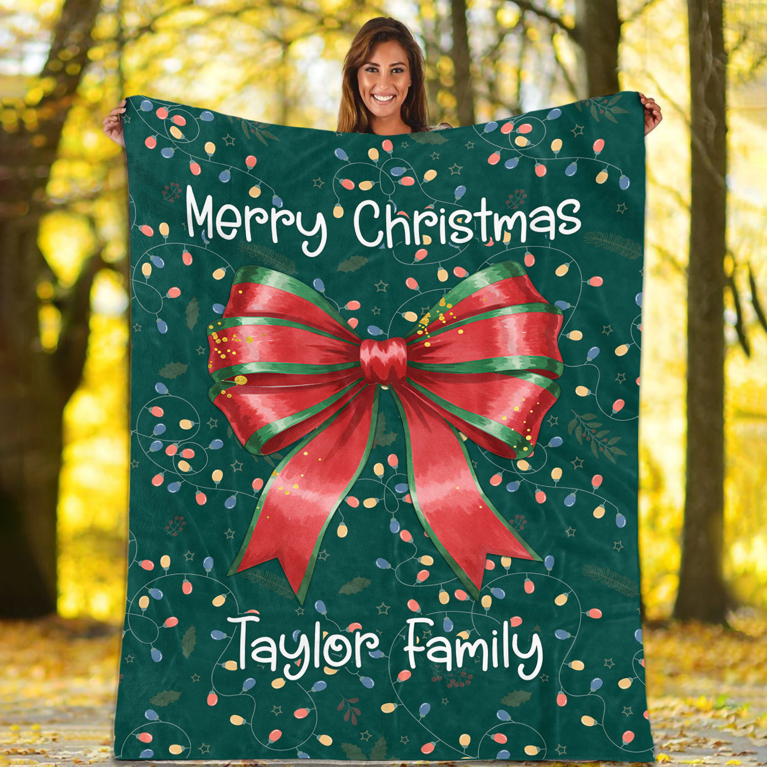 Let’s Shop Personalized Family Christmas Fleece Blanket – Christmas Coquette Blanket – Family Name Gift, Kids Mom Christmas Gift!