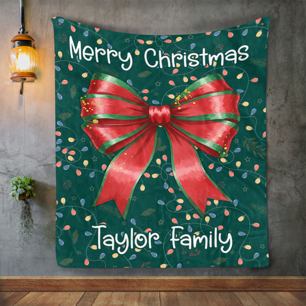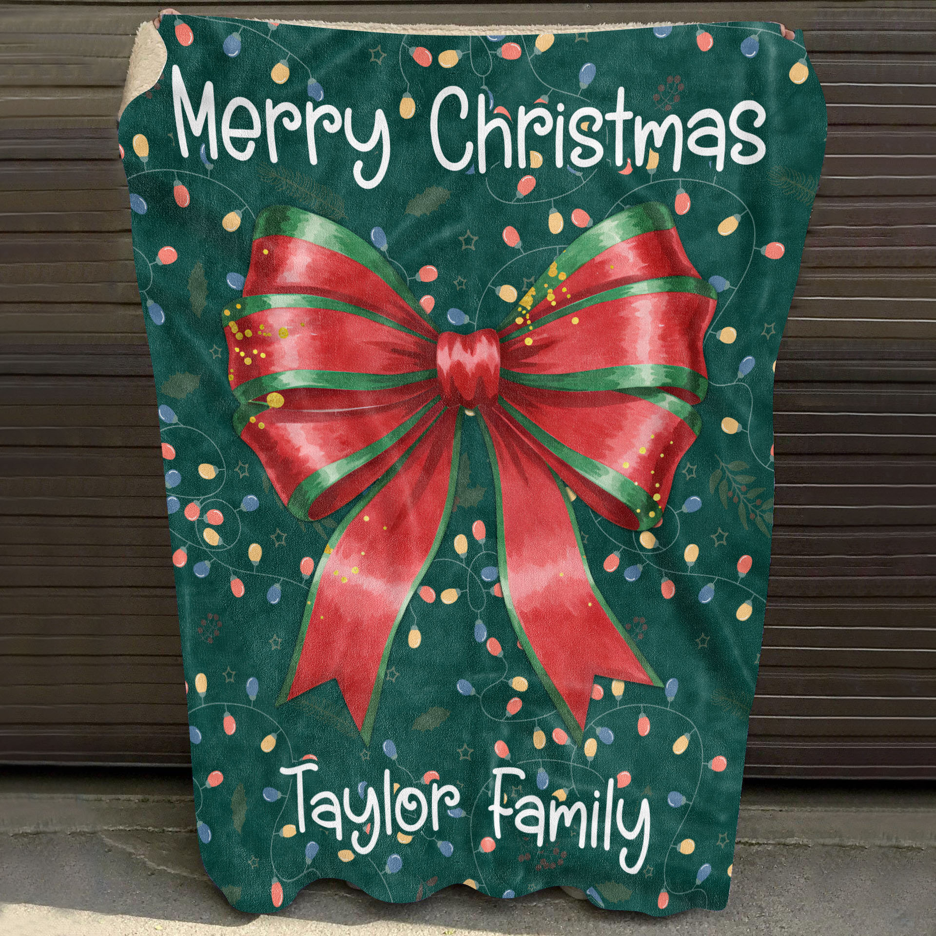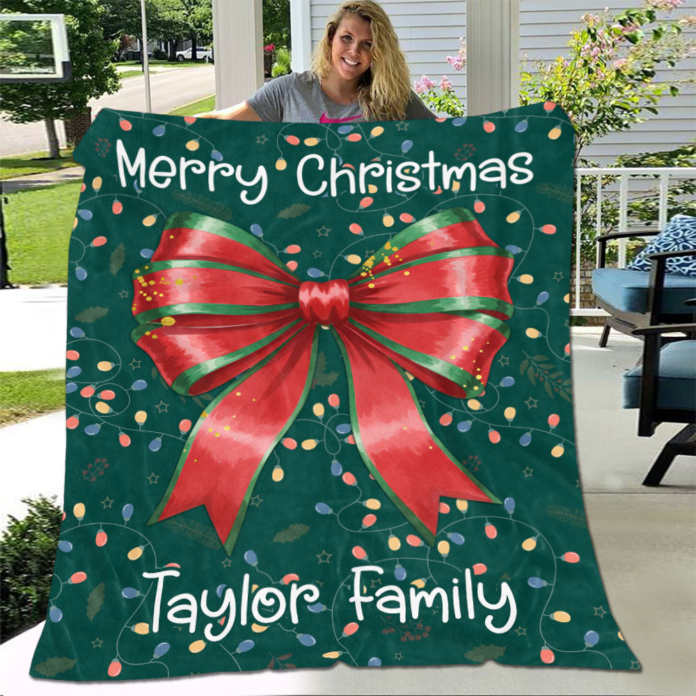 Let’s Shop Personalized Family Christmas Fleece Blanket – Christmas Coquette Blanket – Family Name Gift, Kids Mom Christmas Gift!