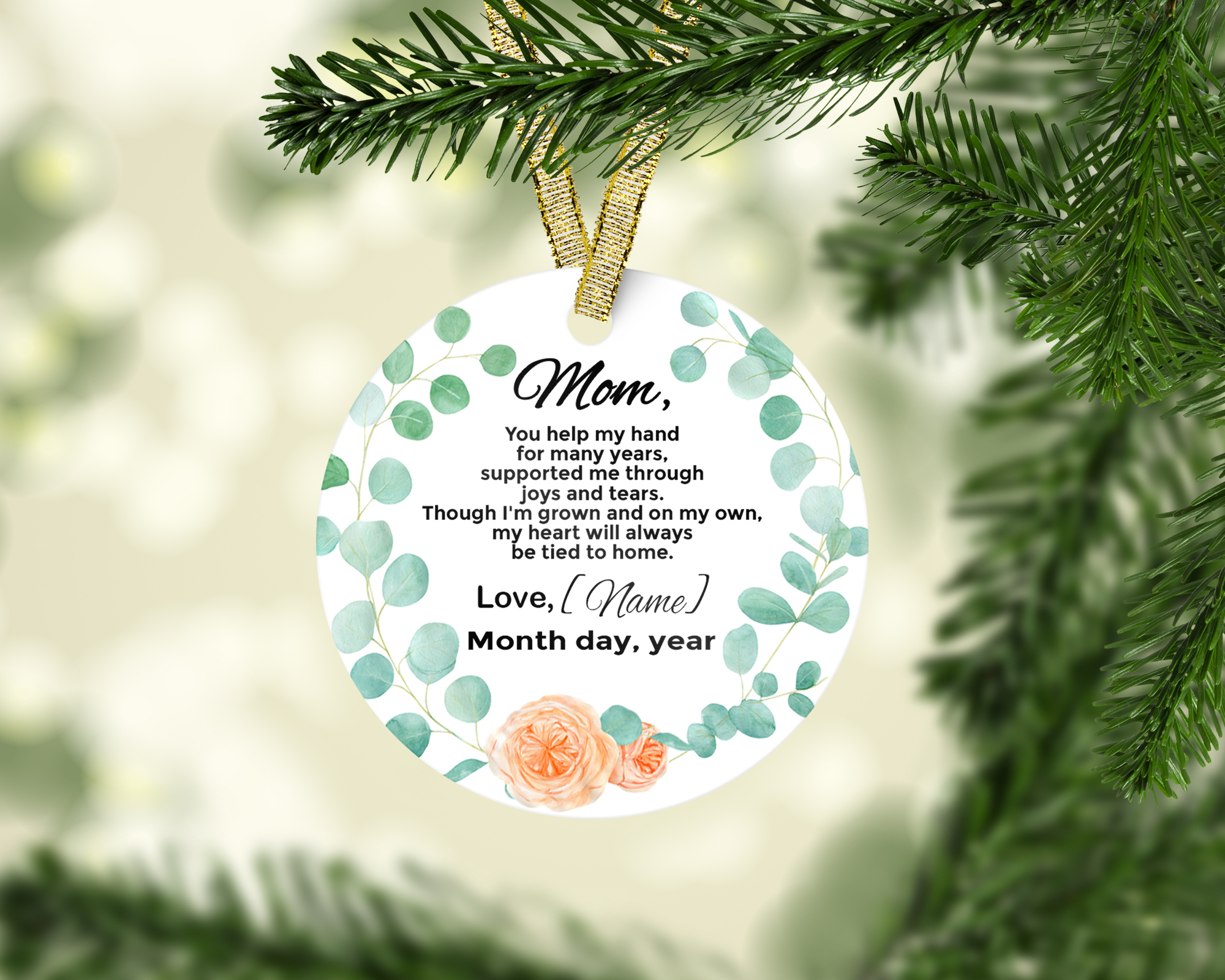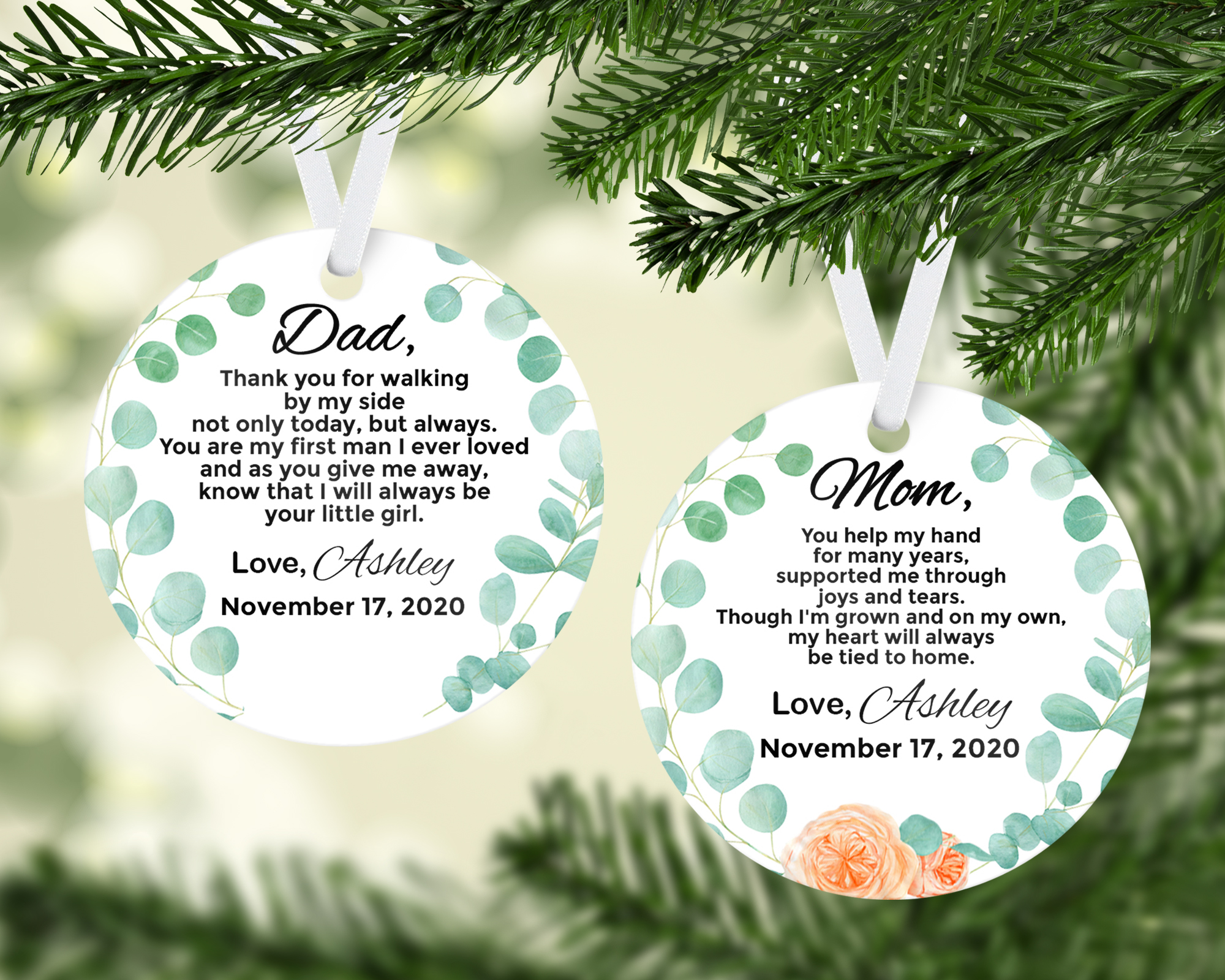 Let’s Shop Personalized Christmas Ornament for Mother from The Bride- Holiday Flat Circle Porcelain Ceramic Ornament!