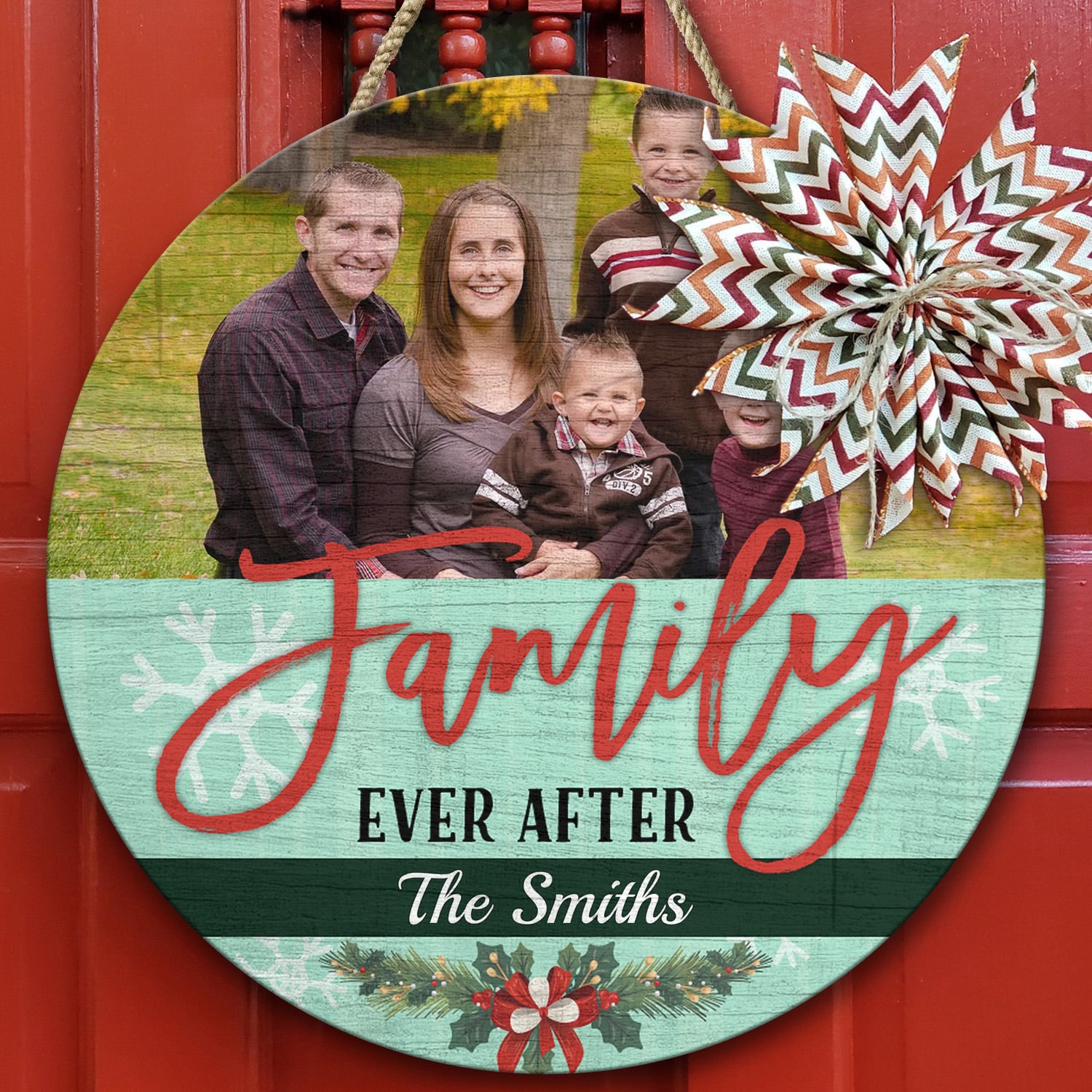 Let’s Shop Personalized Family Ever After Circle Wooden Door Sign – Customized Family Name and Photo Door Sign – Christmas Decoration Gift!