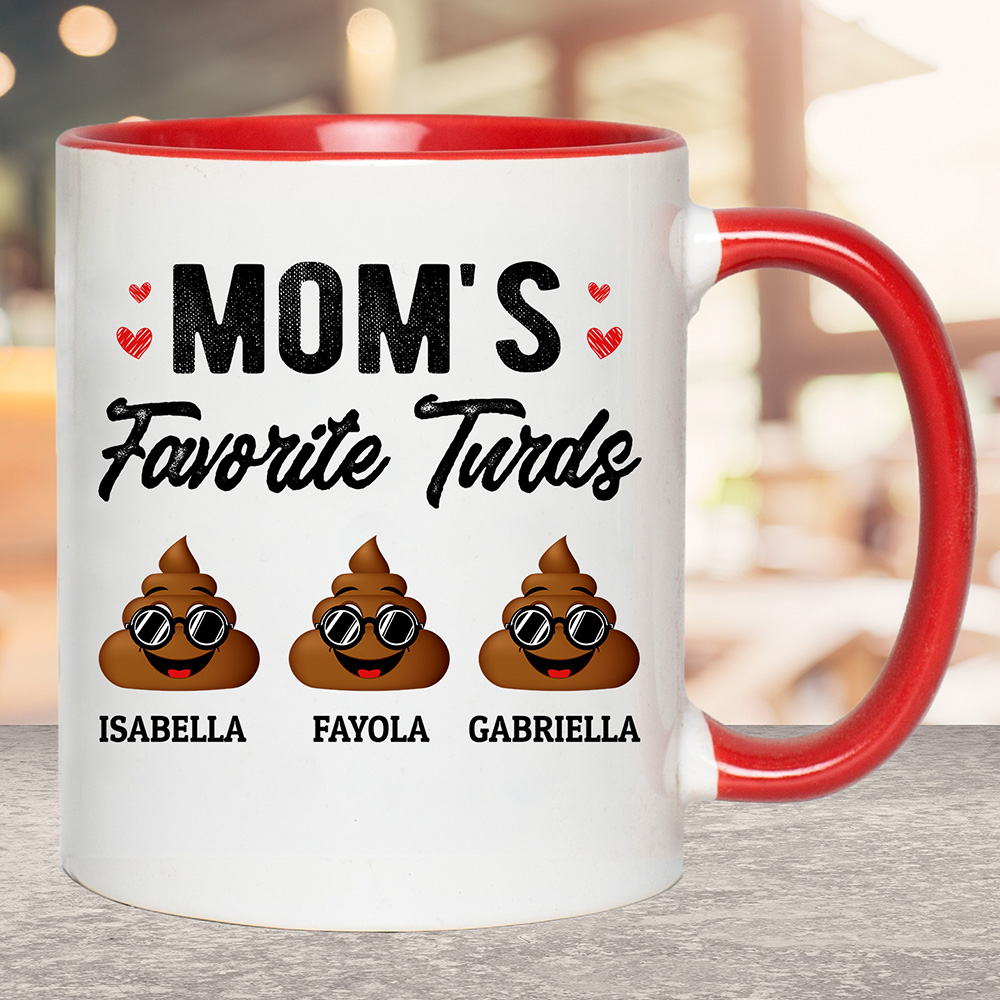 Personalized Mom’s Favorite Three Turds Funny Personalized Family Accent Mug