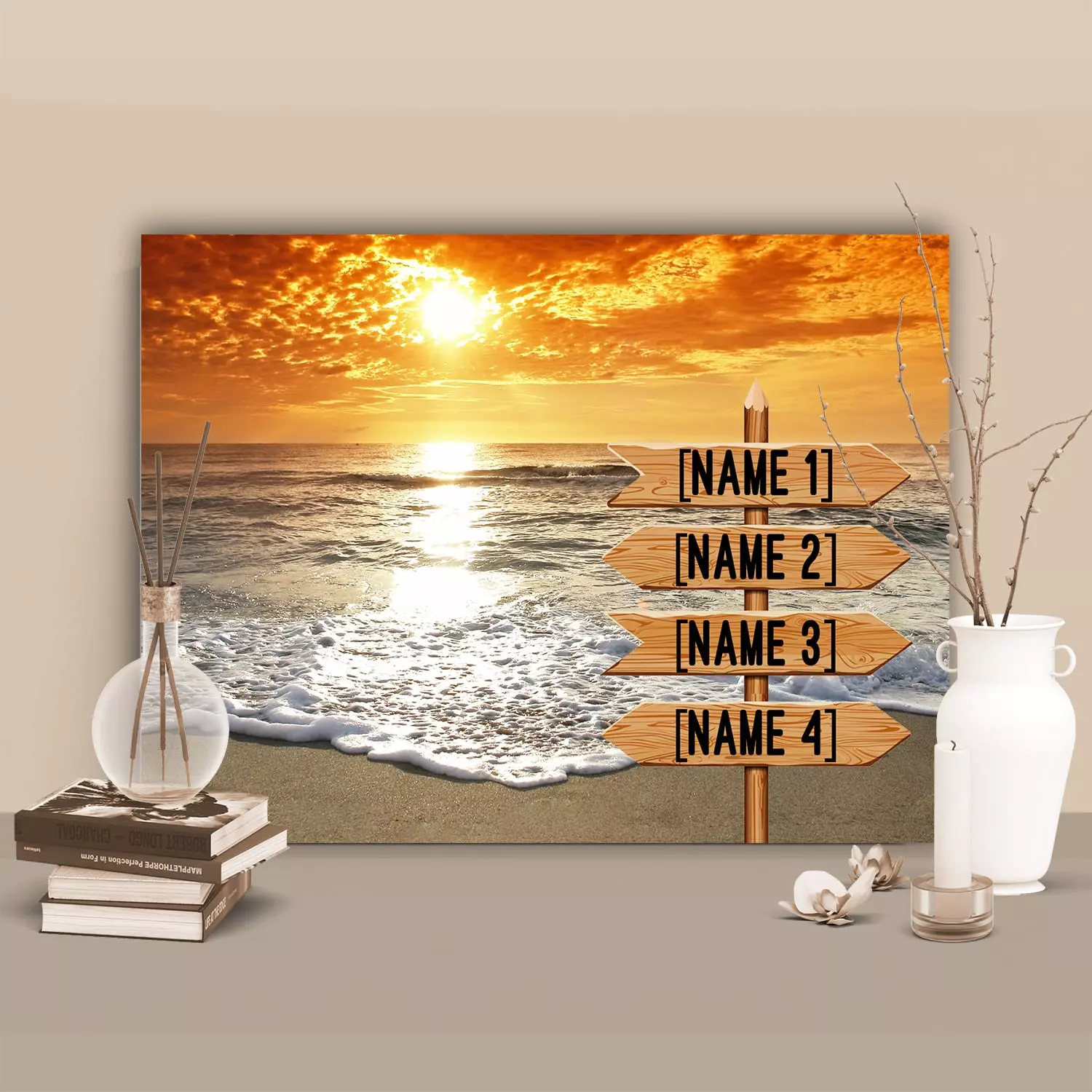 Let’s Shop Personalized Family Name Beach Sunset Gallery Wrapped Framed Canvas Prints-Unframed Poster!