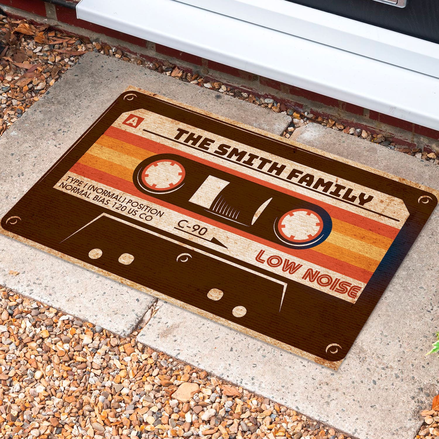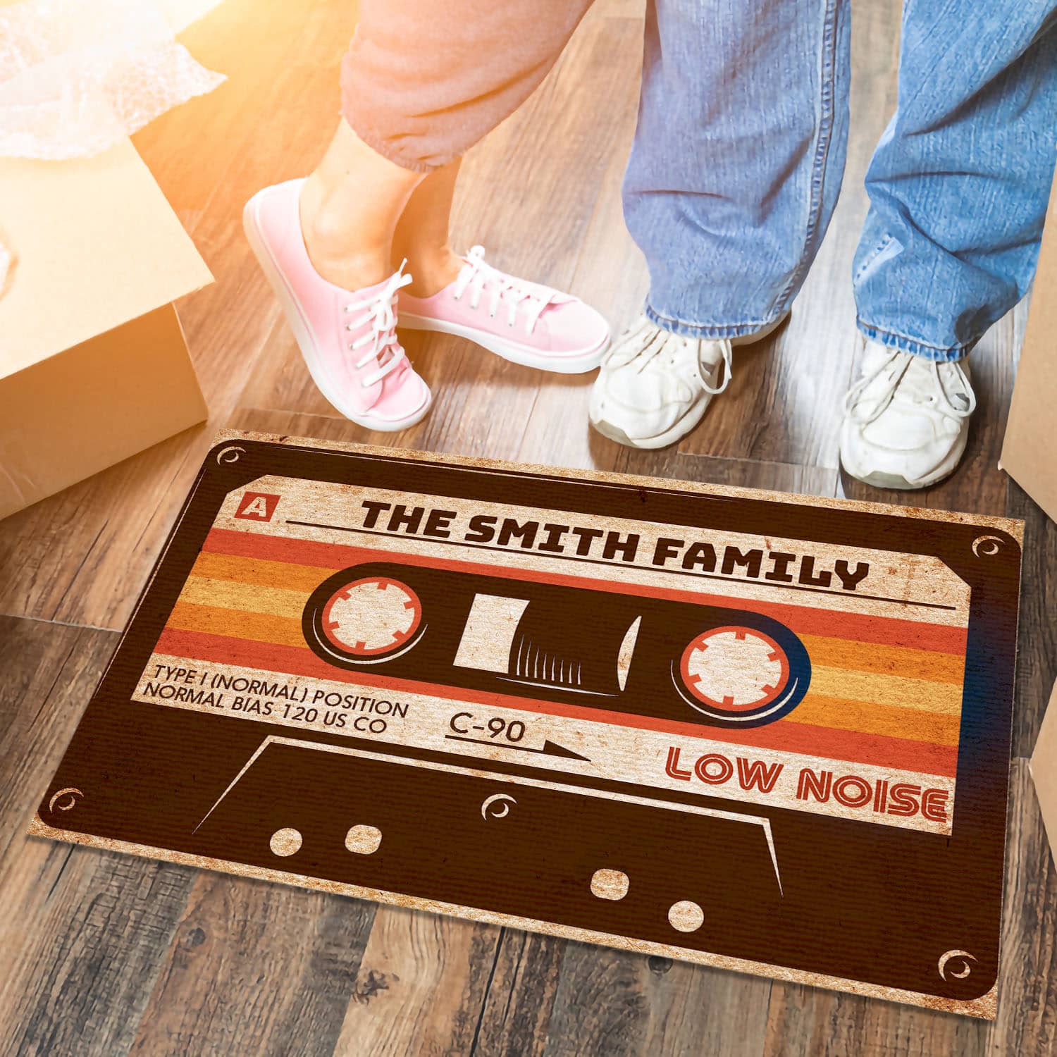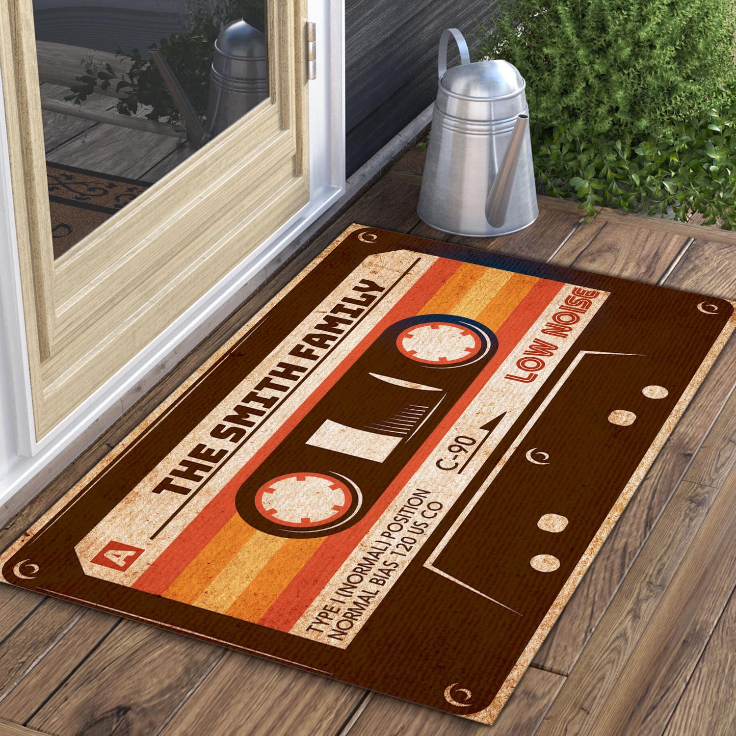 Let’s Shop Personalized Family Name Decor Mix Tape Welcome Casette Tape Funny Entrance Indoor Outdoor Decorative Doormat!