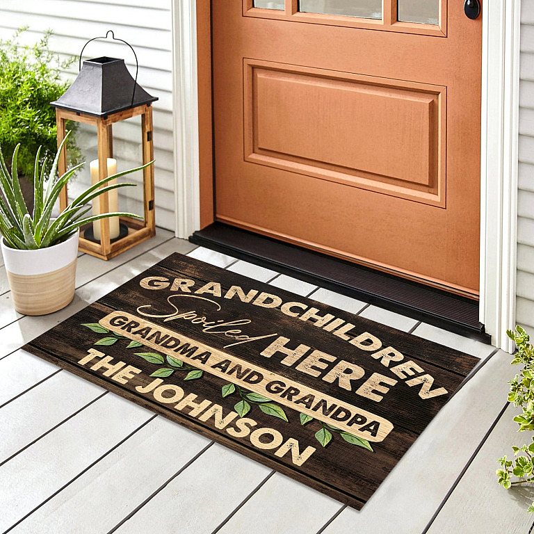 Let’s Shop Personalized Family Name Grandchildren Spoiled Here Grandma And Grandpa Doormat – Outdoor Indoor Doormat – Grandparents Doormat!