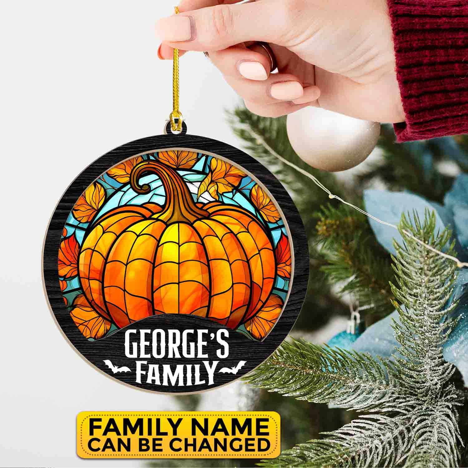 Let’s Shop Personalized Family Name Halloween Pumpkin Suncatcher Ornament Keepsake – Halloween Decoration Gifts!