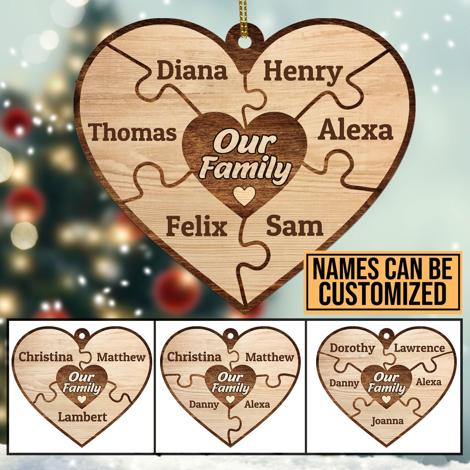 Are you spending too much time to find creative merchandise for you or suitable & special gifts for your mommy, your daddy, your son, your daughter, your children, your friends or someone you love? The struggle is over because we have various Personalized Family Ornament, Personalized Family Christmas Ornaments, Family Personalized Ornament, Family Ornament, Family Personalized Christmas Ornaments, Heart Ornament, Wooden Heart Ornaments, Christmas Ornament Puzzle which will make perfect presents for your beloveds. In order to make your present stand out, we have created lots of unique and awesome customized photo gifts & personalized designs.